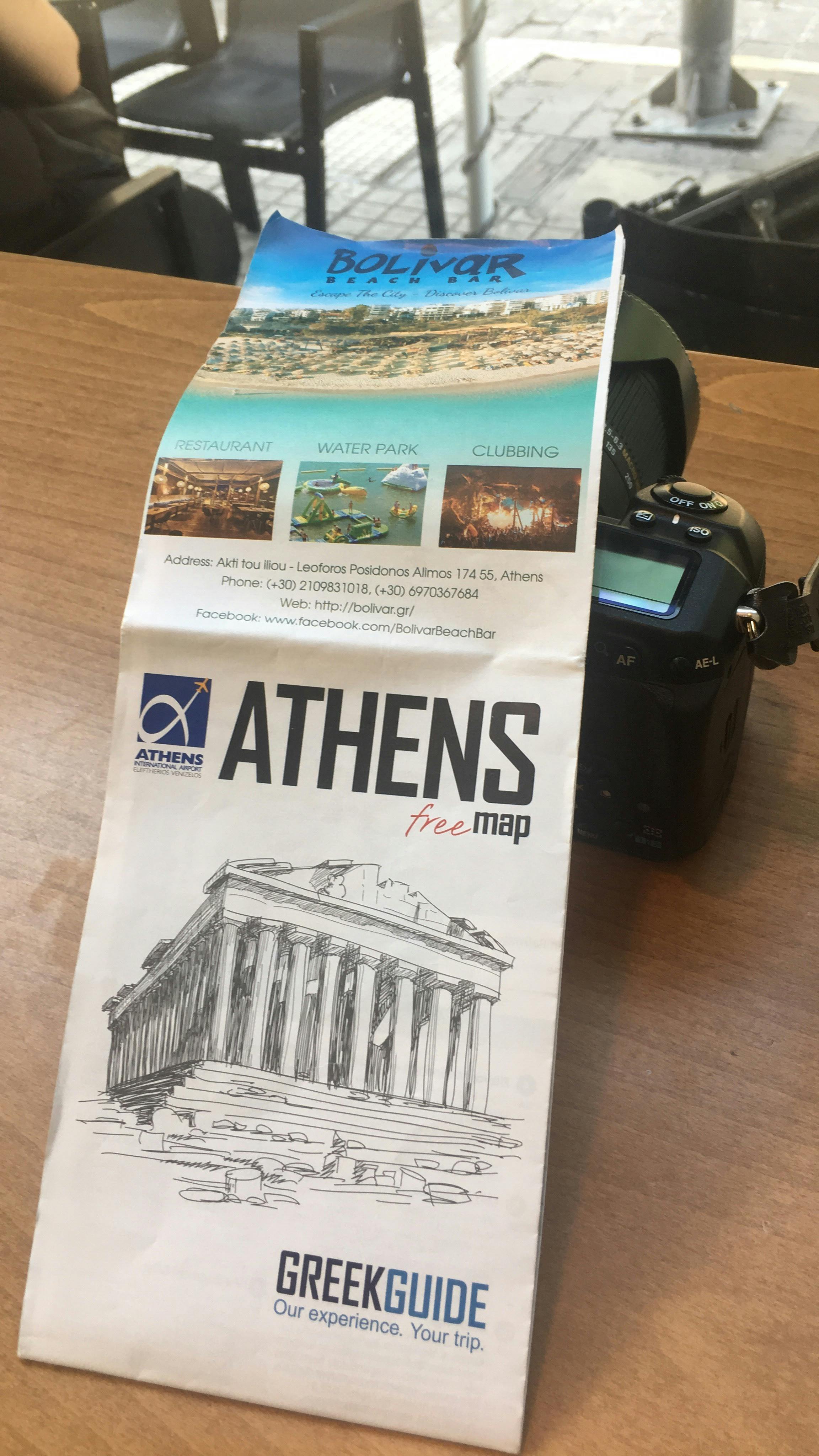 アテネにて。カメラとガイドマップ