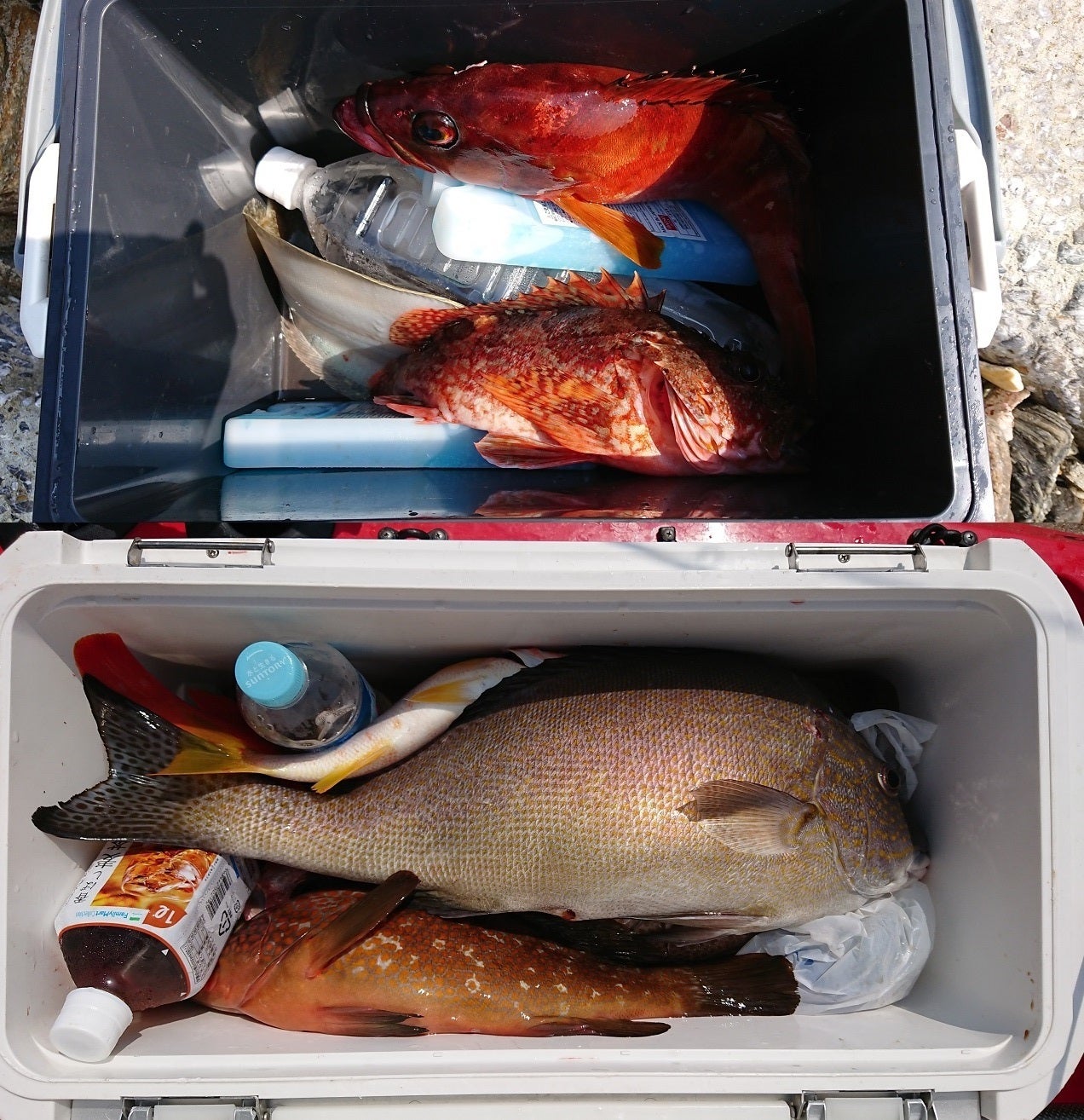 うちのゲストハウスの「売り」はなんといっても魚です。美味しい魚が手軽に釣れて、いつでも食べられなければ意味がありません。そこで久しぶりに海に出てみました。結果はこのとおり↑3人で4時間の釣果です。マダイ、コロダイ、キジハタ、オオモンハタ、カンパチ、ヒラメ、カサゴ...どの魚もよく肥えていてデカいです。やっぱりここの海は間違いない!