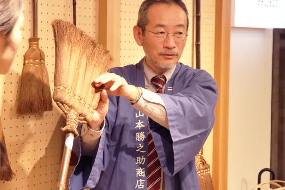 ほうきの穂先に癖がついたり開きが気になってきたときの対処法など、お手入れの実演もしていただきました。