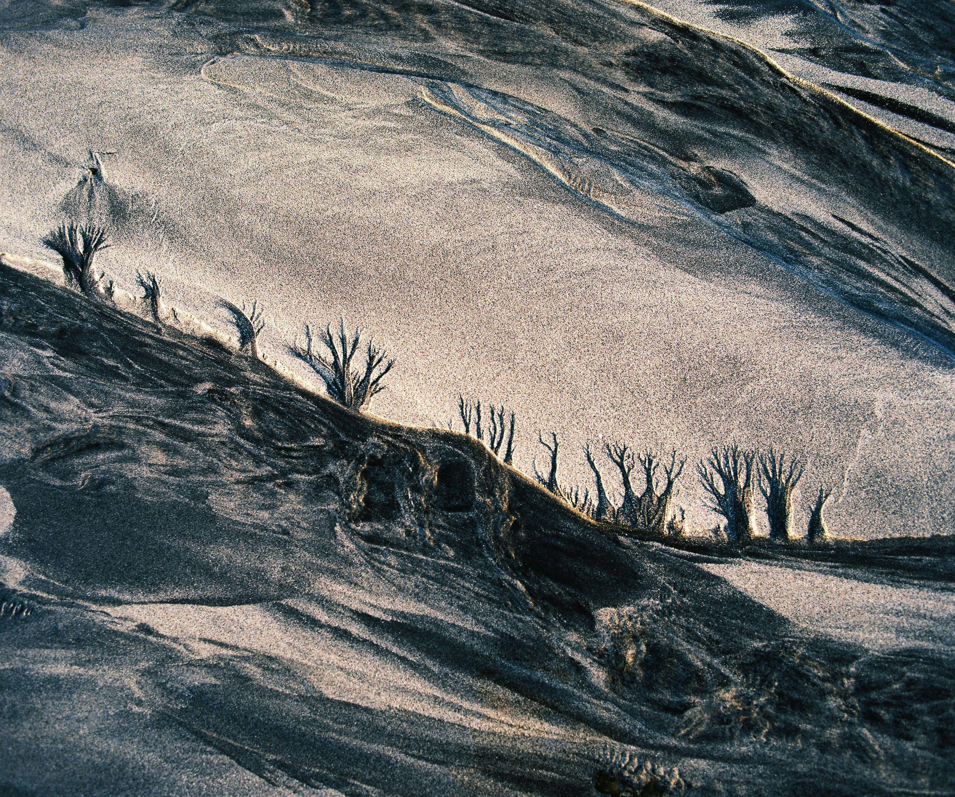 私は、その樹木のような形の砂が生まれては消えていくのを見て、胸をしめつけられるような苦しさと哀しさを覚えました、それと同時に、いや、それよりも少し早く、これまで自分が追い求めてきた狭間にある風景、果てにある生命の瀬戸際の世界がいままさに眼前に繰り広げられていることに魂が震えました。