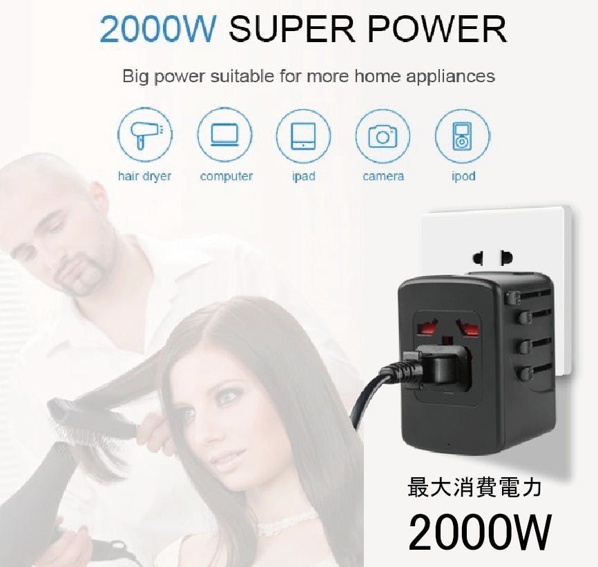高い電力を消費するヘアドライヤー等気にする事なく使用できます!!
