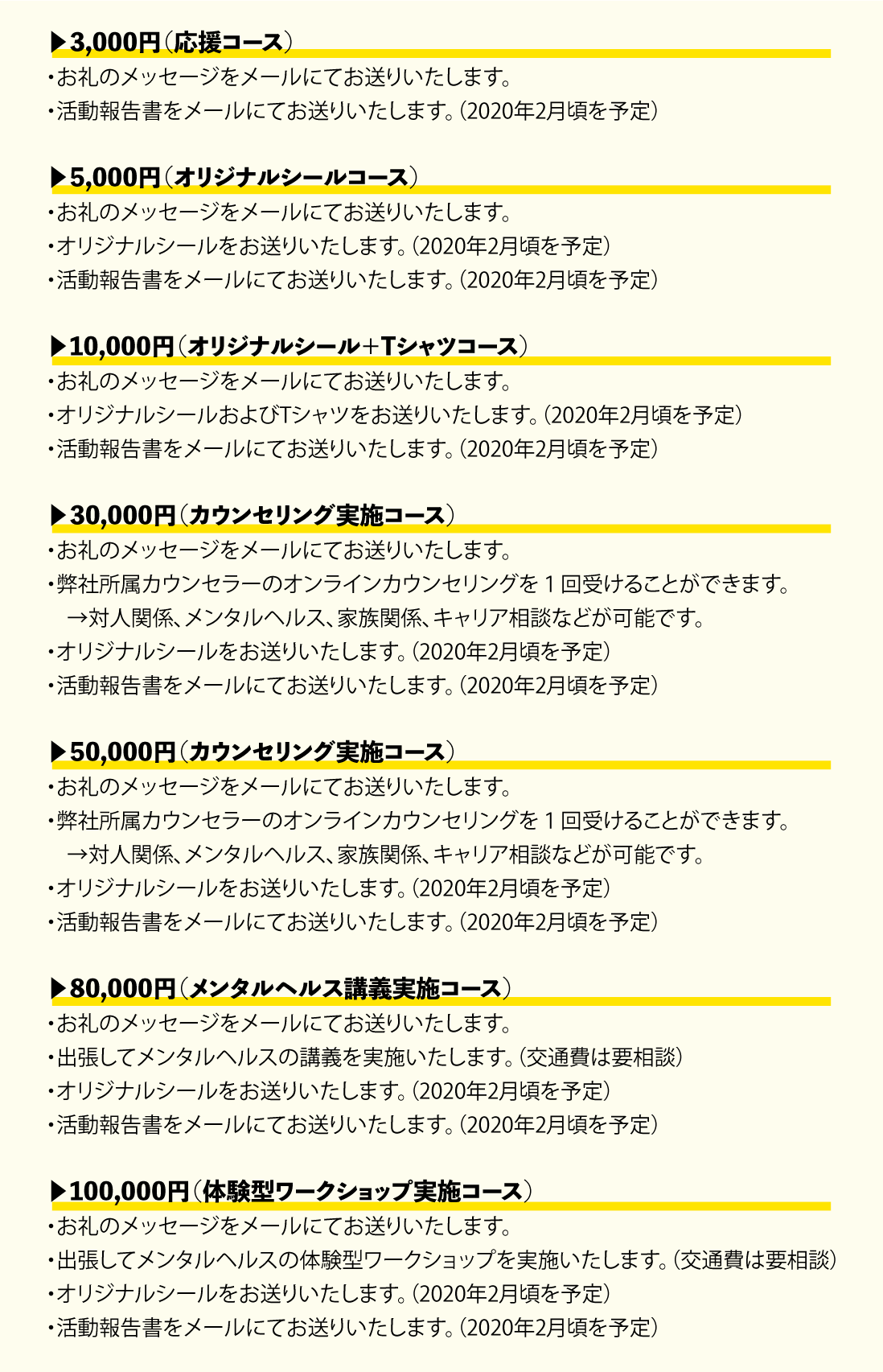 皆さまにご支援いただいた資金は上記の通り活用させていただきます。