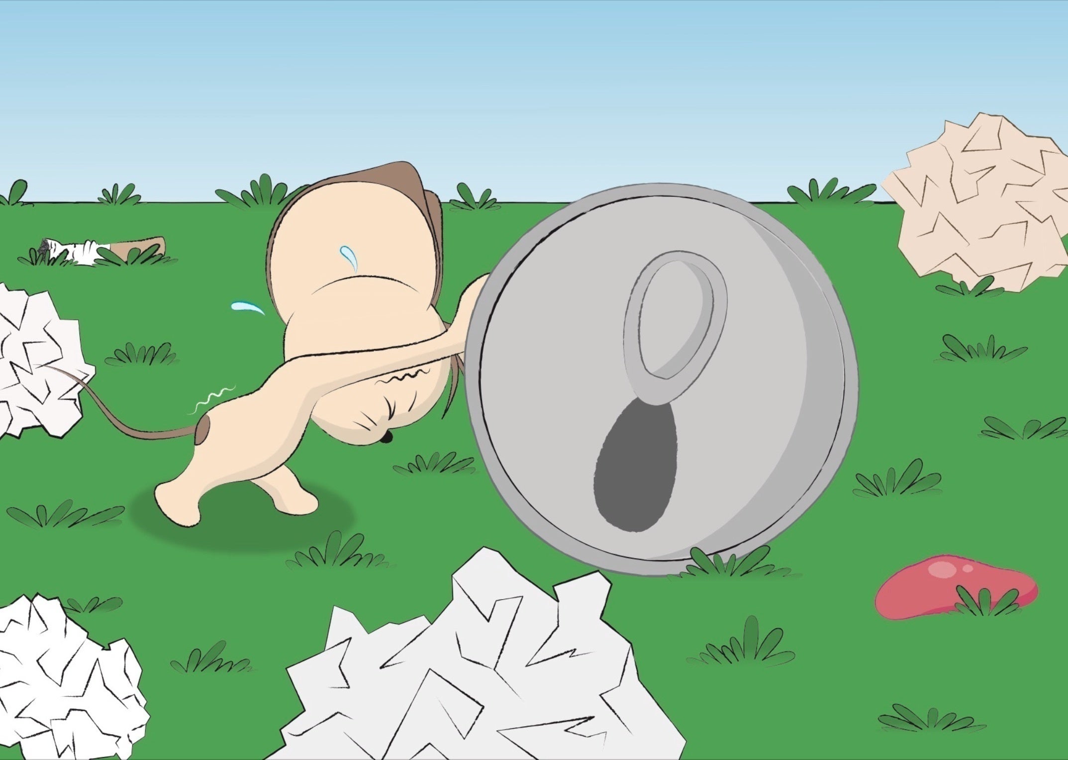 どうやらさっきの大きな音は、ジュースの空き缶をなげすてた時にドアにぶつかった音だったようです。