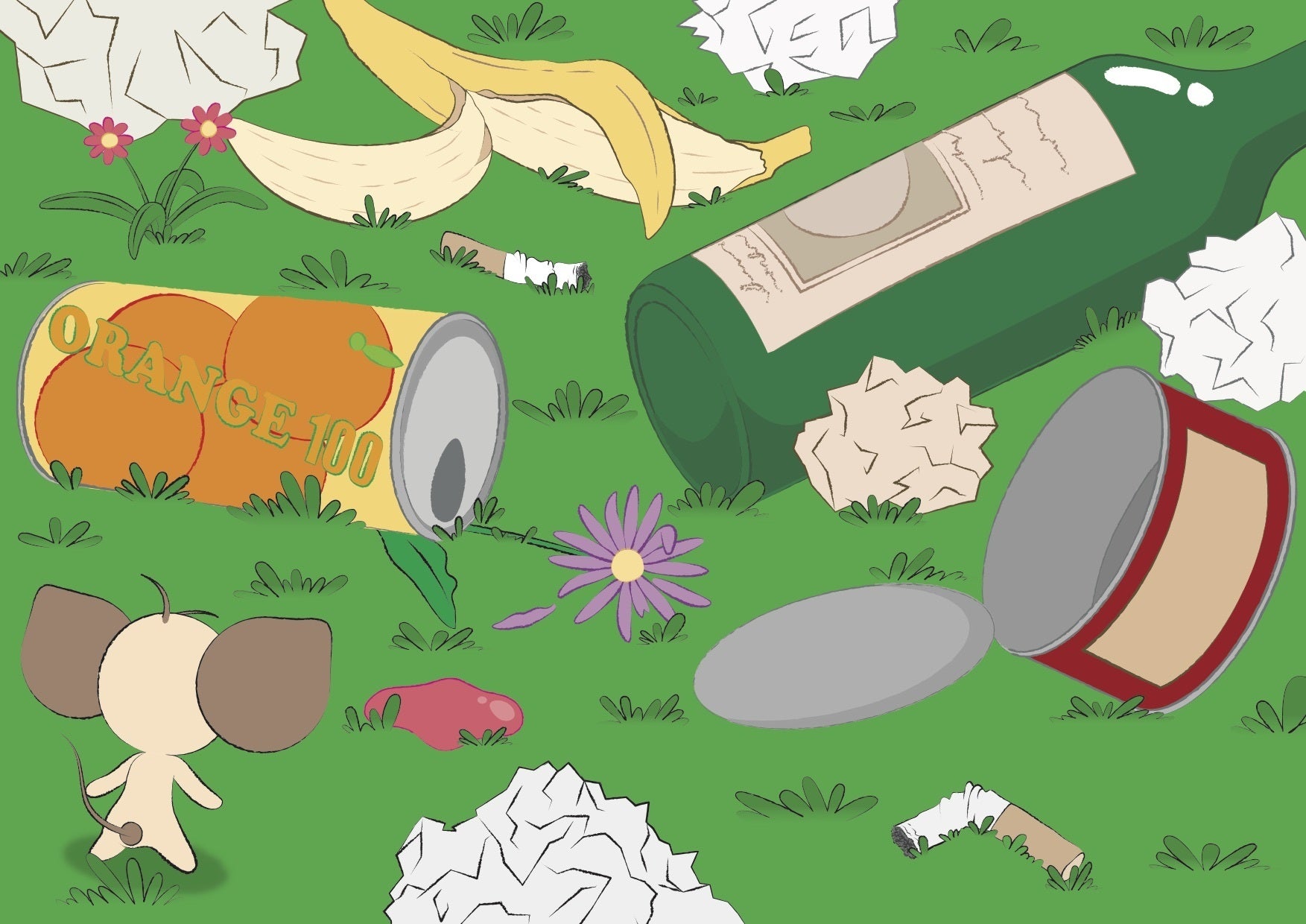 「ひどいなぁ、また今日もかぁ。。。近くにゴミ箱があるのになぁ。。。。」