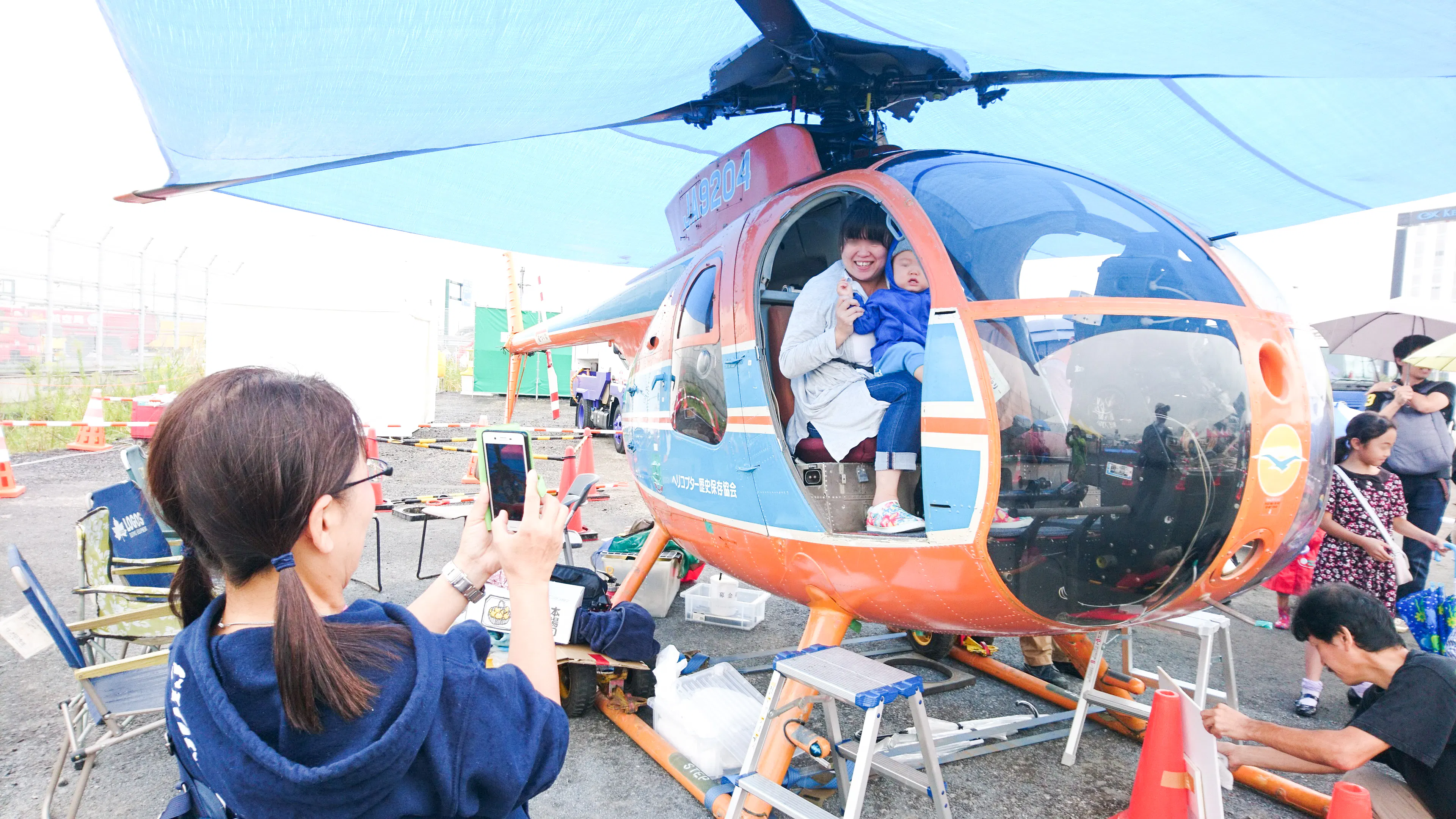 「私の羽田アルバム展」、「電動ヒコーキ・フライト体験会」、「ペーパーグライダー・ワークショプ」、「羽田航空博物館展」、「羽田空港歴史さんぽ」など数ある活動の一つとして、毎年9月末に羽田空港で行われる「空の日」イベントでホンモノのヘリコプターを展示しています。