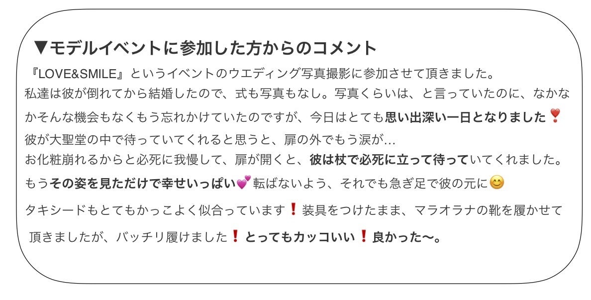 2019/11/15 09:43有楽町マルイ「みんなのフィッティングルーム」をお借りして開催した「Mana'olanaゆったり試着展示会」。おかげさまで日曜満席となり、靴を必要とされている多くのお客様と直接お話をすることができました。みなさまありがとうございました!本日の活動報告には、「なぜMana'olanaには試着会があるのか」、そして「試着会を終えて」の感想をアップさせていただきました。よろしくお願いします。**********************************************************なぜMana'olanaには試着会があるか昨今のネットで服も、靴も購入! の流れの中で、わたしたちは、販売の流れの中で下肢装具をつけてらっしゃるお客様に試着会でお試しになられるということを強くオススメしています。理由はこちらです。1 お客様の装具と足の状態によって、靴のサイズを左右違うものに変えられるから。足全体をカバーする装具をつけることで、左右のサイズが違うお客様にも対応しております。お値段はプラスになりますが、靴は足にフィットすることが大切。ぜひお試しいただいてから、ご購入を検討していただきたいのです。2 お客様の装具と足の状態によって、靴のベルトをあなたにぴったりの長さにすることが可能だから。装具によって、足の甲回りの太さが変わるお客様に対応しております。女性用フラットシューズは、真ん中のベルトを装具に合わせたサイズに長さを無料でオーダーできるのです。ぜひご自身にあった長さで、しっかりと甲をホールドしてください。3 ご自身で思っているサイズと実際のサイズに違いがあるから。スニーカーで履けるサイズでパンプスを履いてみたら、履いた時に感触が微妙に変わるのはよくあること。特に装具をつけた足は高さがでる場合があるため、実際のはき心地を確認していただきたいと考えています。いかがでしたでしょうか。装具をつけていらっしゃるからこそ、足と靴との関係をご自身で確かめてご購入いただきたい。微妙な調節は、できるだけさせていただきます。どうぞMana'olanaの試着会にお越しくださいませ。試着会を終えてさて、今回の試着会で改めて感じたのは、下肢装具をつけることで、本当に普通にはける靴がなくなってしまうことです。ご病気で、事故で、お客様は突然これまで楽しんでいた自分の靴が全て履けなくなってしまいます。どれほど驚いたか、どれほど困ったか。試着した時の輝くお顔をみて、履ける靴が手元に戻ってきた喜びを痛いほど感じました。「この靴、はける! わたxし、普通の靴が履けるんですね!」「この靴をはいてると、足、フツーに見えませんか?!」お客様の声を聞くことができて、本当によかったです。Mana'olanaはあらためて、背筋を伸ばしました。わたしたちは、足に何かの問題をもつあなたが、普通のデザインの靴を選べないという状況を変えていきます。そして、すべての人が自分らしくあるための選択肢を、これからも増やしていきます。あなたの喜びのための、世界でたった一つのブランドとして。応援してください。 もっと見る