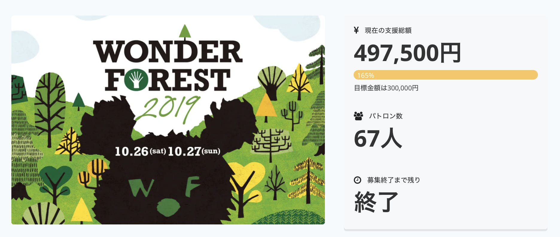 目標を大きく上回り165%、67名の方にご支援いただきました。ありがとうございました。
