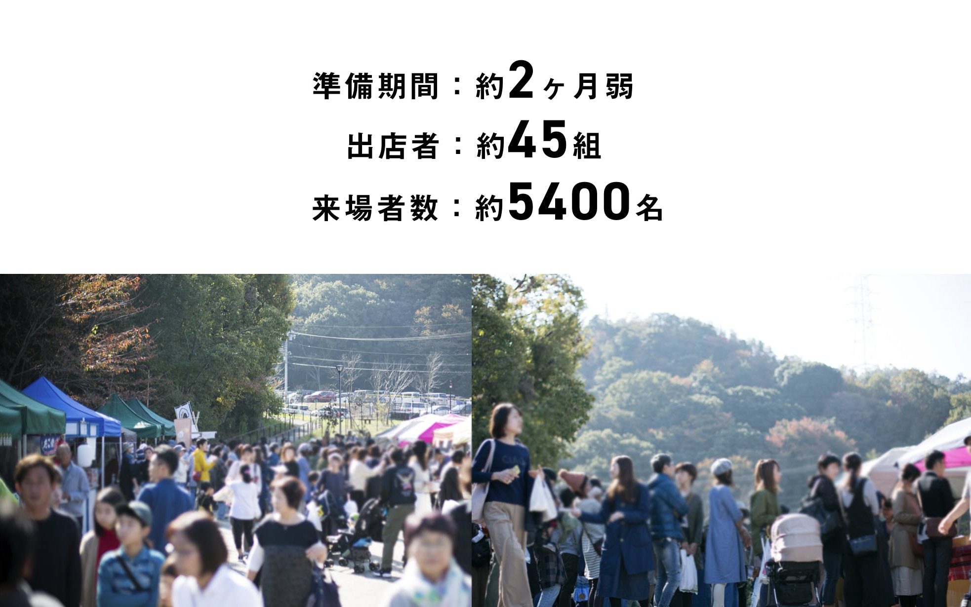 昨年、大阪府熊取町で立ち上がった地域フェスで、行政と民間企業と個人が一体となって行われ、永楽ゆめの森公園という会場を舞台に、フード・ライブ・ワークショップ・ダンスイベントなど、50以上のコンテンツが集まりました。入場者数は、自分たちの想定を大幅に超える、約5400人。200台用意された駐車場が足りず、終了30分前まで渋滞状態が続いたほどの賑わいぶりでした。