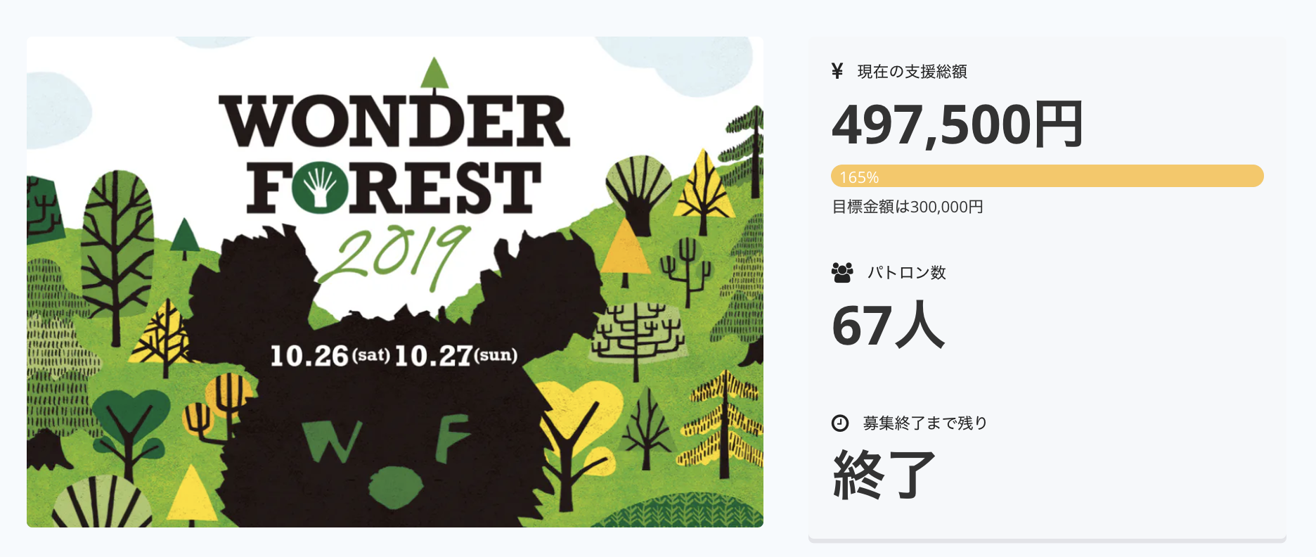 目標を大きく上回り165%、67名の方にご支援いただきました。ありがとうございました。