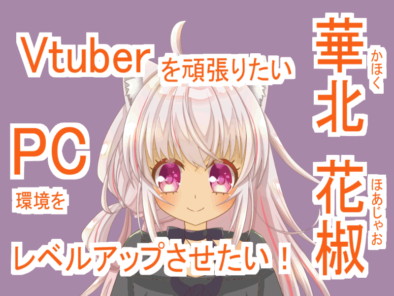 2019/06からVtuberとしてYouTubeに動画を上げるなど活動をしています「華北 花椒」(カホク ホアジャオ)と申します。今年から一人で勉強し始めたLive2Dを使ってキャラクターを動かしています。