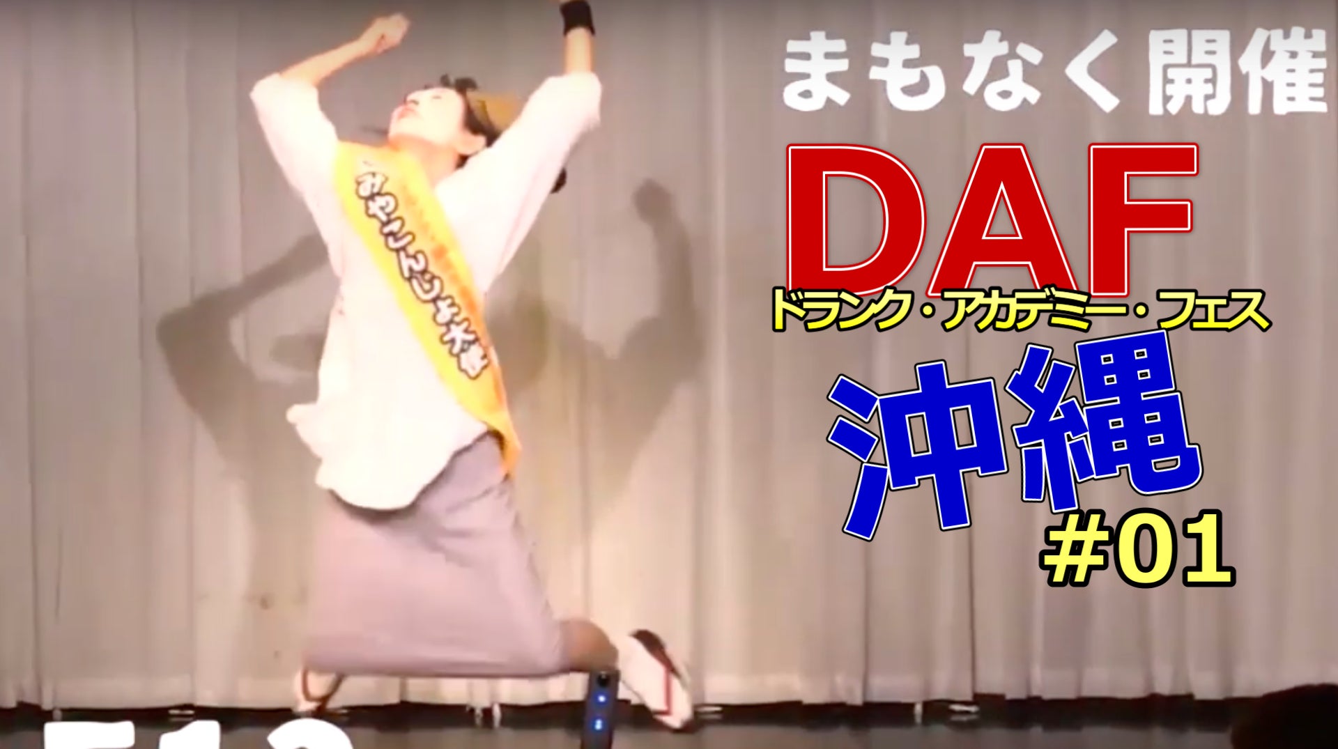 東京で定期開催されるDAF(ドランクアカデミーフェス)は、9月で第17回目を迎えるロングラン公演ですが、今回、沖縄から熱いメッセージを全国に発信したとい思い、沖縄在住のコンテンツホルダーをオーディションで選出して、FM那覇との共催でDAF沖縄のイベント公演をFM那覇のステージから生放送します。