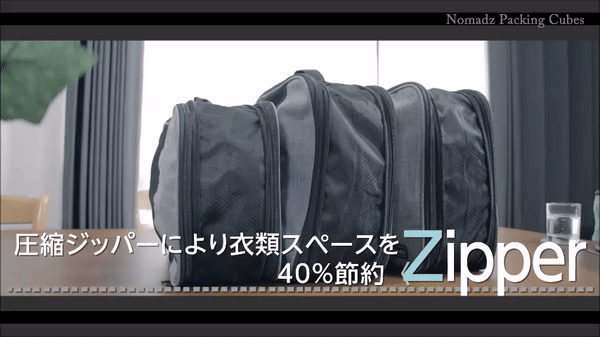 ノマド圧縮バッグはジッパーで圧縮する為、一瞬で簡単に圧縮できます。荷物も増えず電気代もかからない!