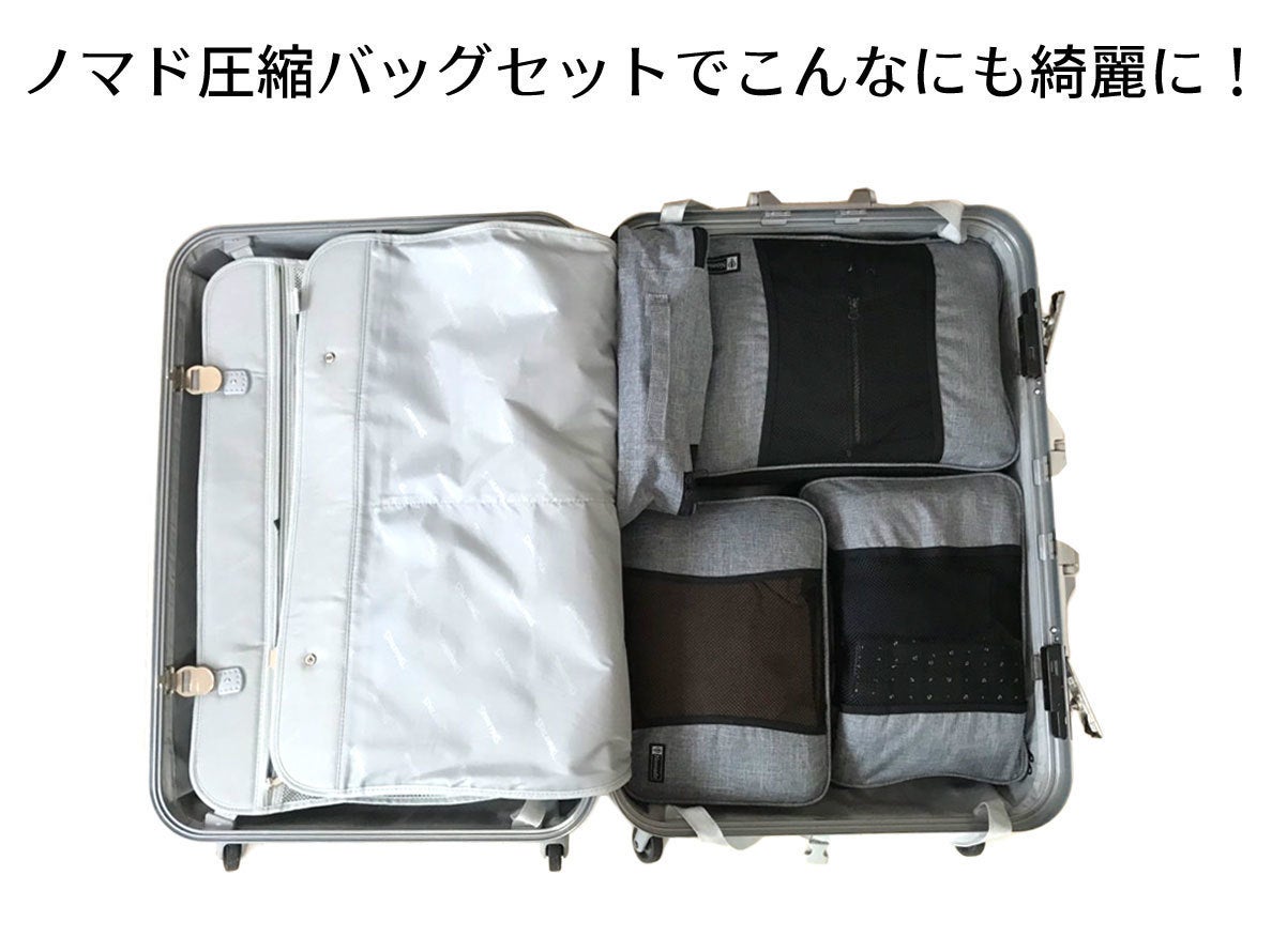 衣類を複数のノマド圧縮バッグに入れて圧縮する為、スーツケース内がスッキリ整理整頓されます。