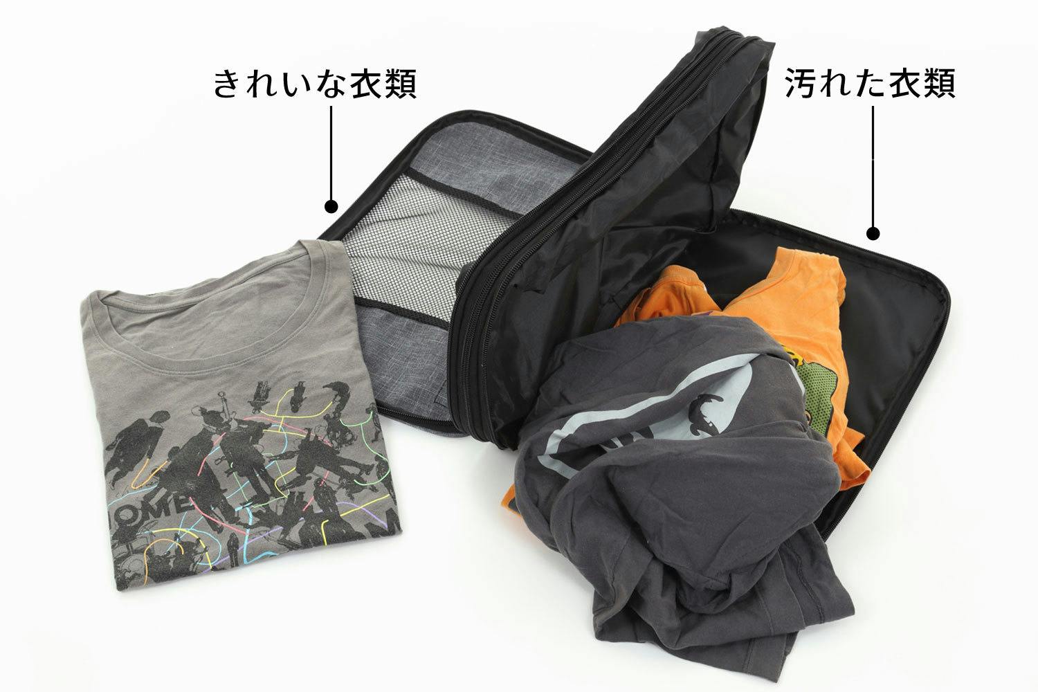 綺麗な衣類を入れるコンパートメントは通気性の高いメッシュ素材できています。