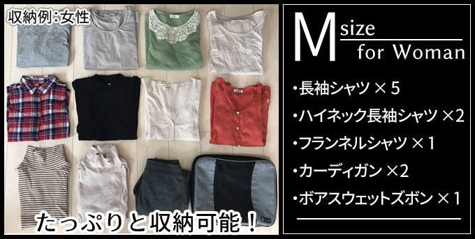 各サイズがどれほどの収納力があるか以下の画像を参考して下さい。