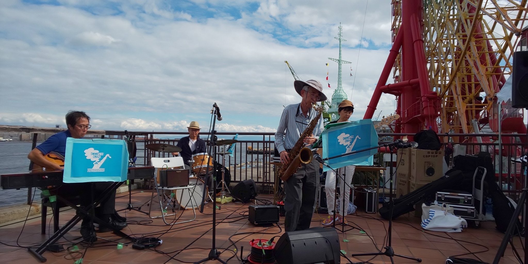 私たちは2008年にこのイベントを立ち上げてから「大学生の手で、ジャズを、神戸を盛り上げる!」をモットーに毎年秋に神戸ハーバーランドで大学生を主体としたジャズライブイベント「Swing Jazz Cruise」を開催しています。