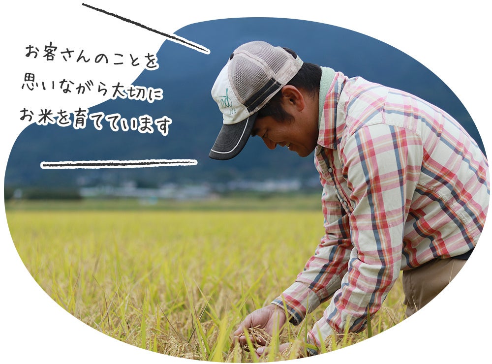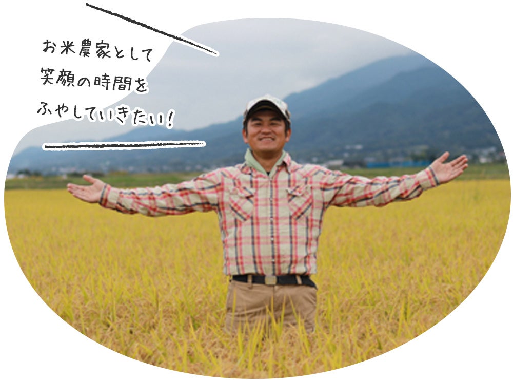 農家としての知識や経験、自然から学んだことを、少しでも多くの方に伝える事で、みなさんがちょっとでも幸せな気分に、そして明日への活力につなげて欲しい、農業の楽しさや面白さ、素晴らしさを伝えていきたい、そんな思いで、愛情を込めて作ったお米をお客様へお届けしています。