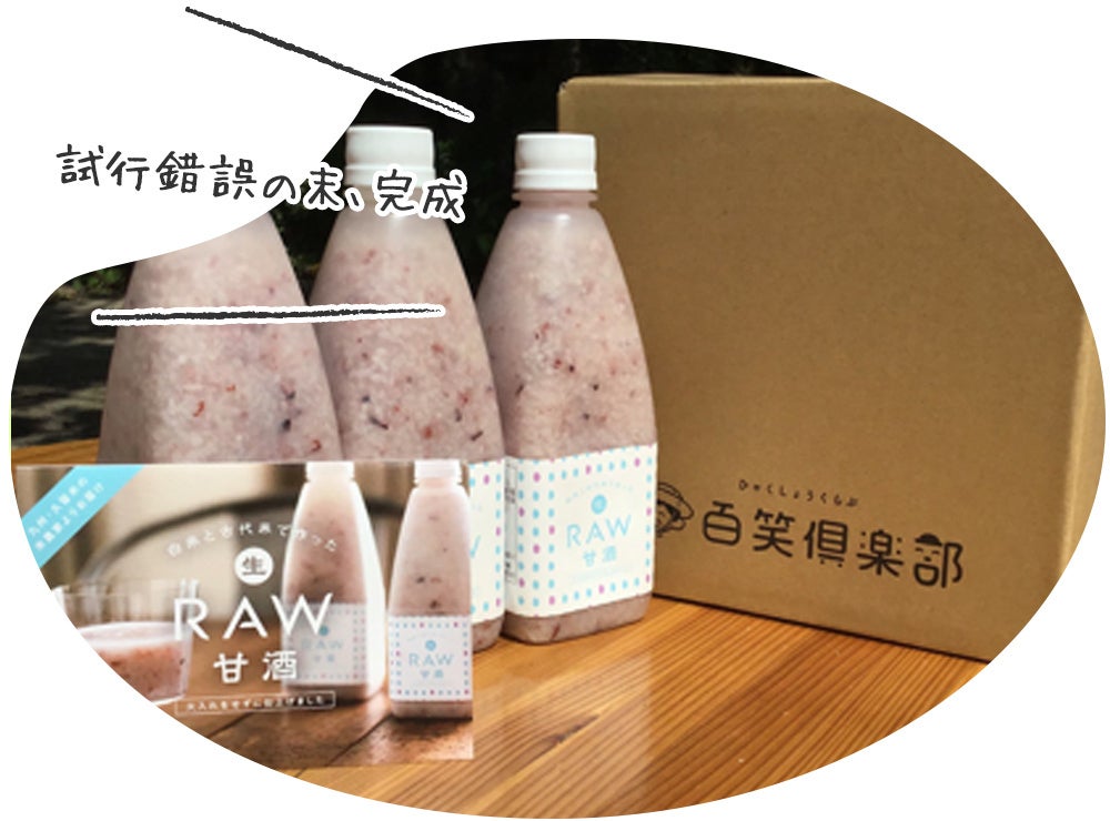 福岡久留米市で米農家「百笑倶楽部」として農業をしています。今回、百笑倶楽部では自社の無農薬米を使った一切火入れをしていない生の甘酒「RAW甘酒」の商品化をしました。