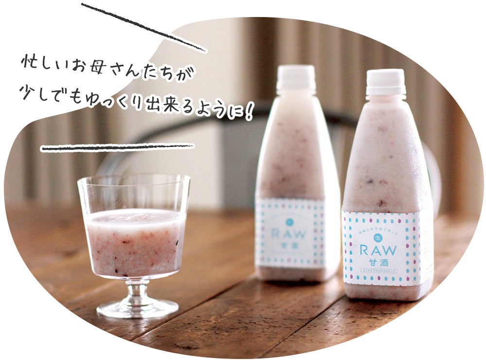 今回のRAW甘酒も、忙しいお母さんたちがほっとできる時間を作れるようにという思いも込めていますので、ぜひお試しいただけると嬉しいです。