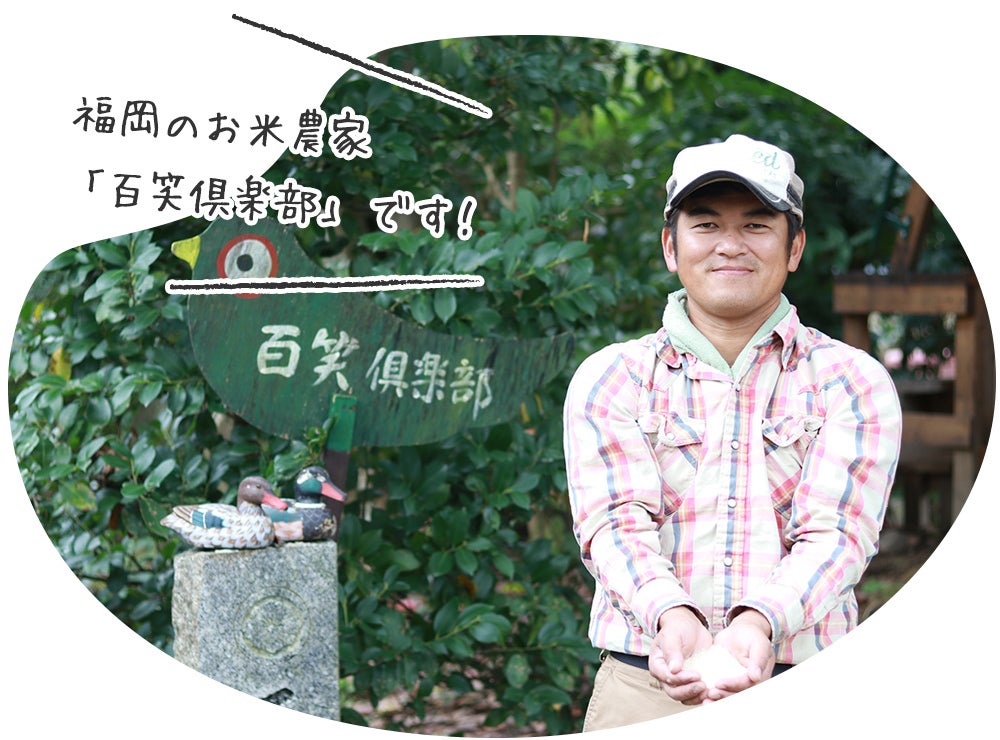 百笑倶楽部は、福岡久留米でお米を育てている生産農家です。1993年から農薬・化学肥料を一切使わずにお米を育てており、安全で美味しい自慢のお米を直接届けたいという思いから、市場などは通さず福岡久留米近郊のお客様にはトラックで一軒一軒お届けしています。