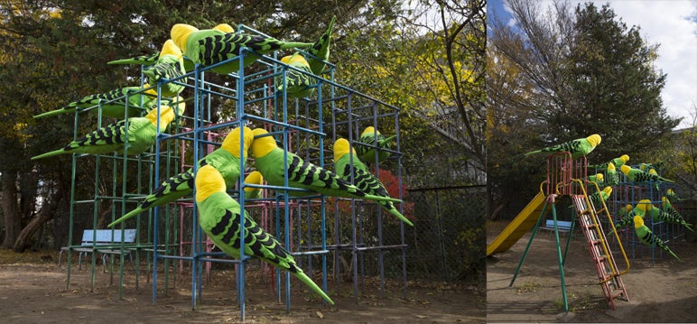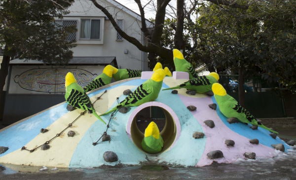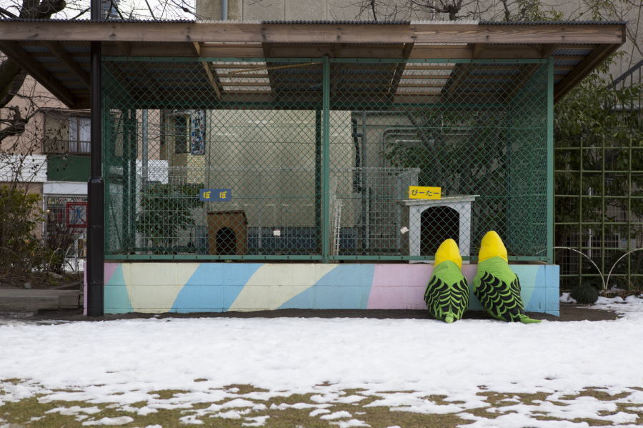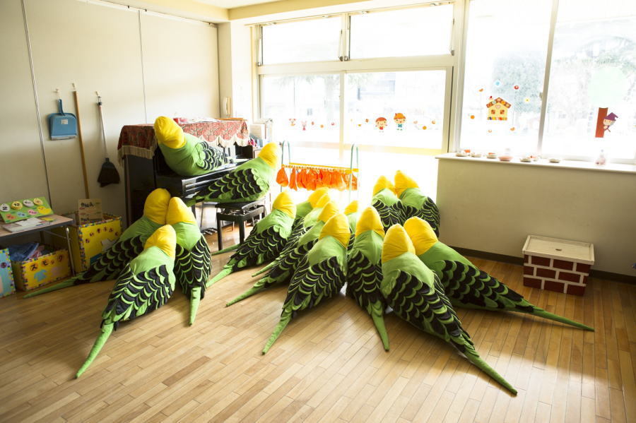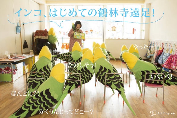 インコ達は、病院を舞台に出発した私たちアート・プログラムの揺るぎない趣旨でもある平和、そして弱者への分け隔てない思いやりと尊敬に満ちている、そんな風に感じ、東京などの主要都市だけではなく、兵庫県加古川市という地方でも、地方だからこそ、ぜひ遠足に来てもらいたいと思っています。