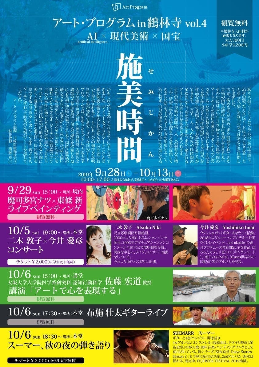 9/28(土)~10/13(日)インコ、遠足「アート・プログラムin鶴林寺vol.4~施美時間~」を満喫予定。