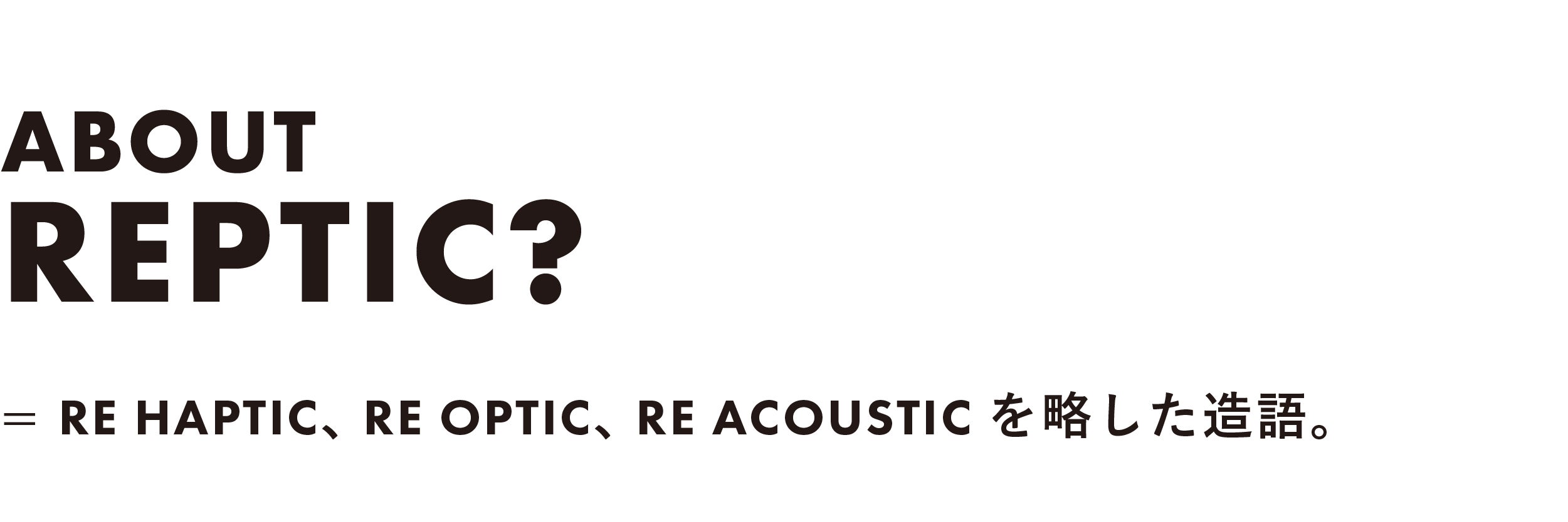 REPTICはRE HAPTIC、 RE OPTIC、 RE ACOUSTIC を略した造語です。