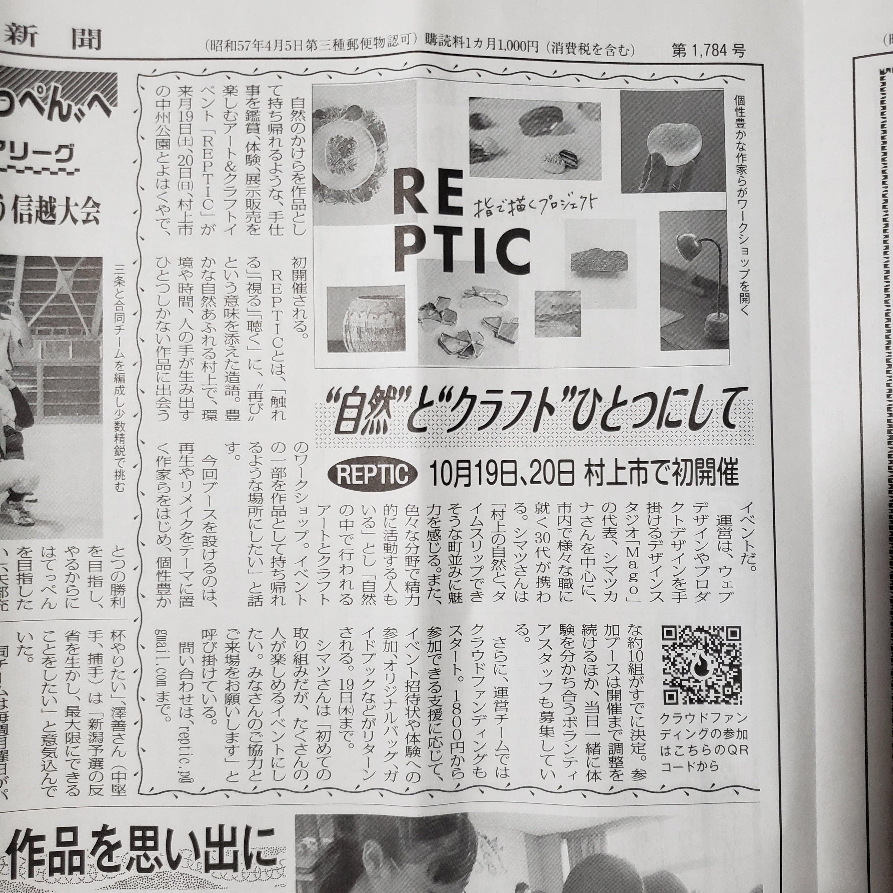 本日発行の村上新聞に、イベント開催の旨を掲載していただきました。