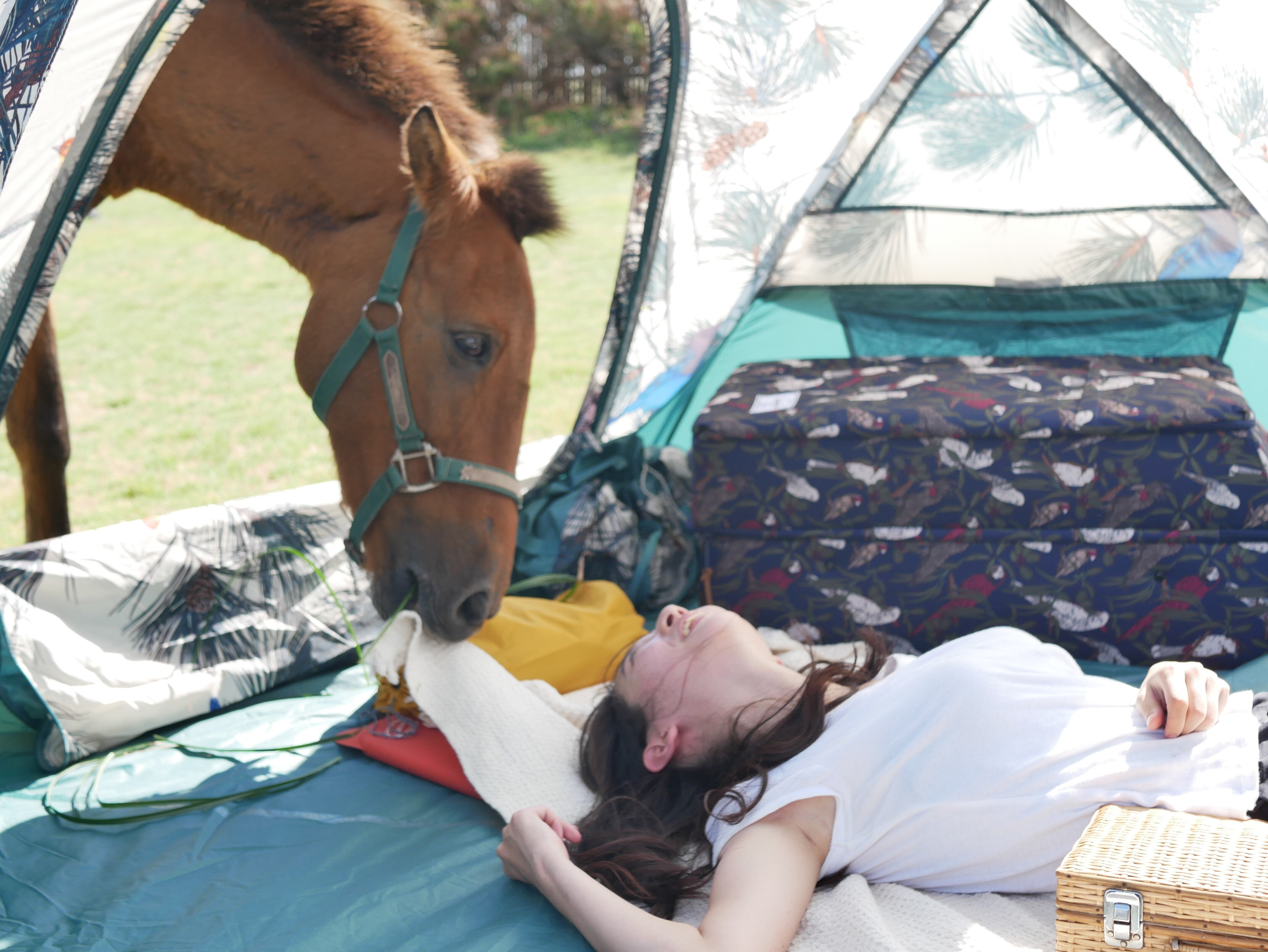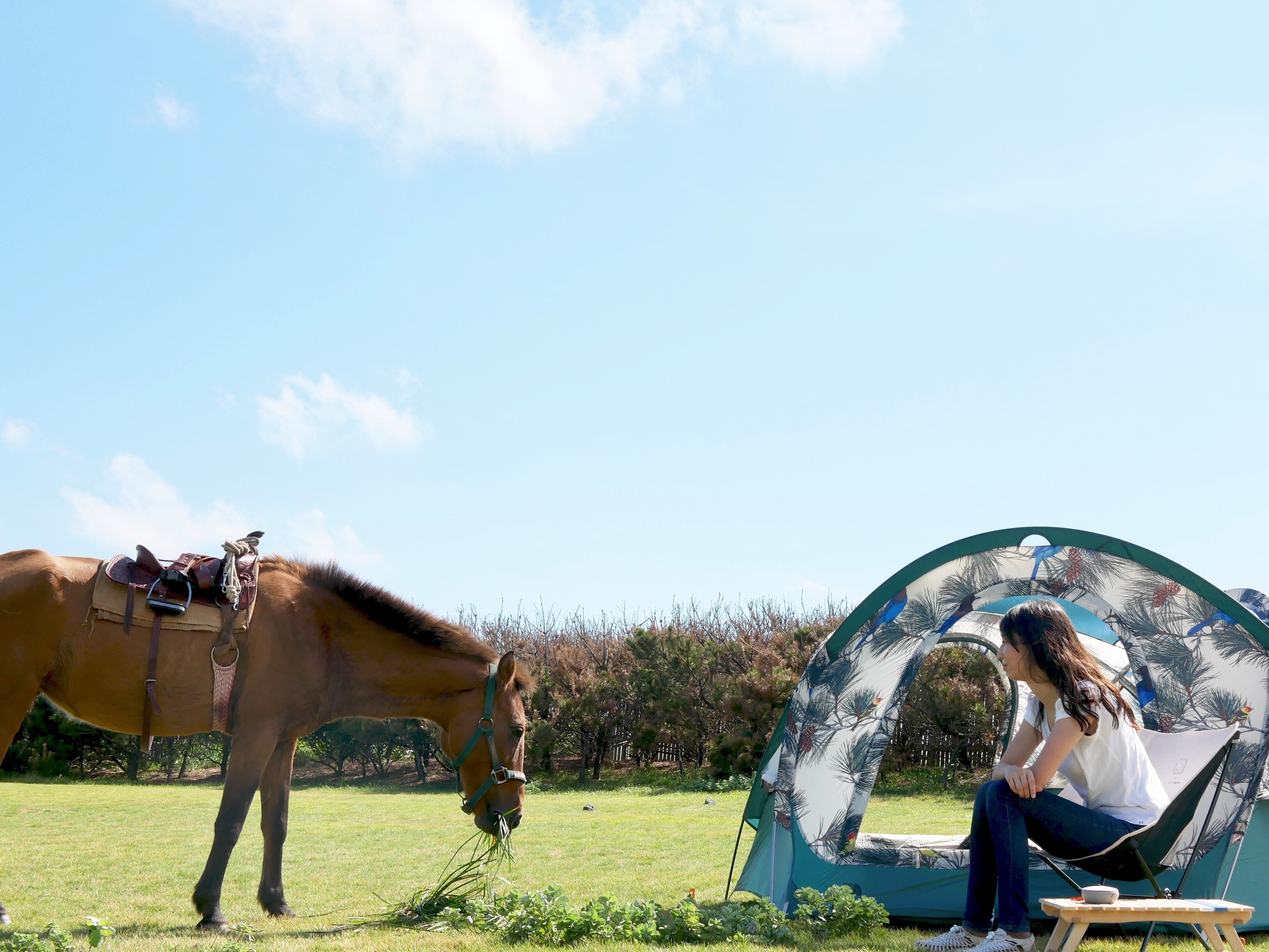 この日はキャンプ場で馬のメイちゃんと待ち合わせ。テントのそばまで遊びに来てもらって、一緒に写真を撮っちゃいました!馬とテント、こんな写真が撮れるのはもしかしたらここだけかもしれません。