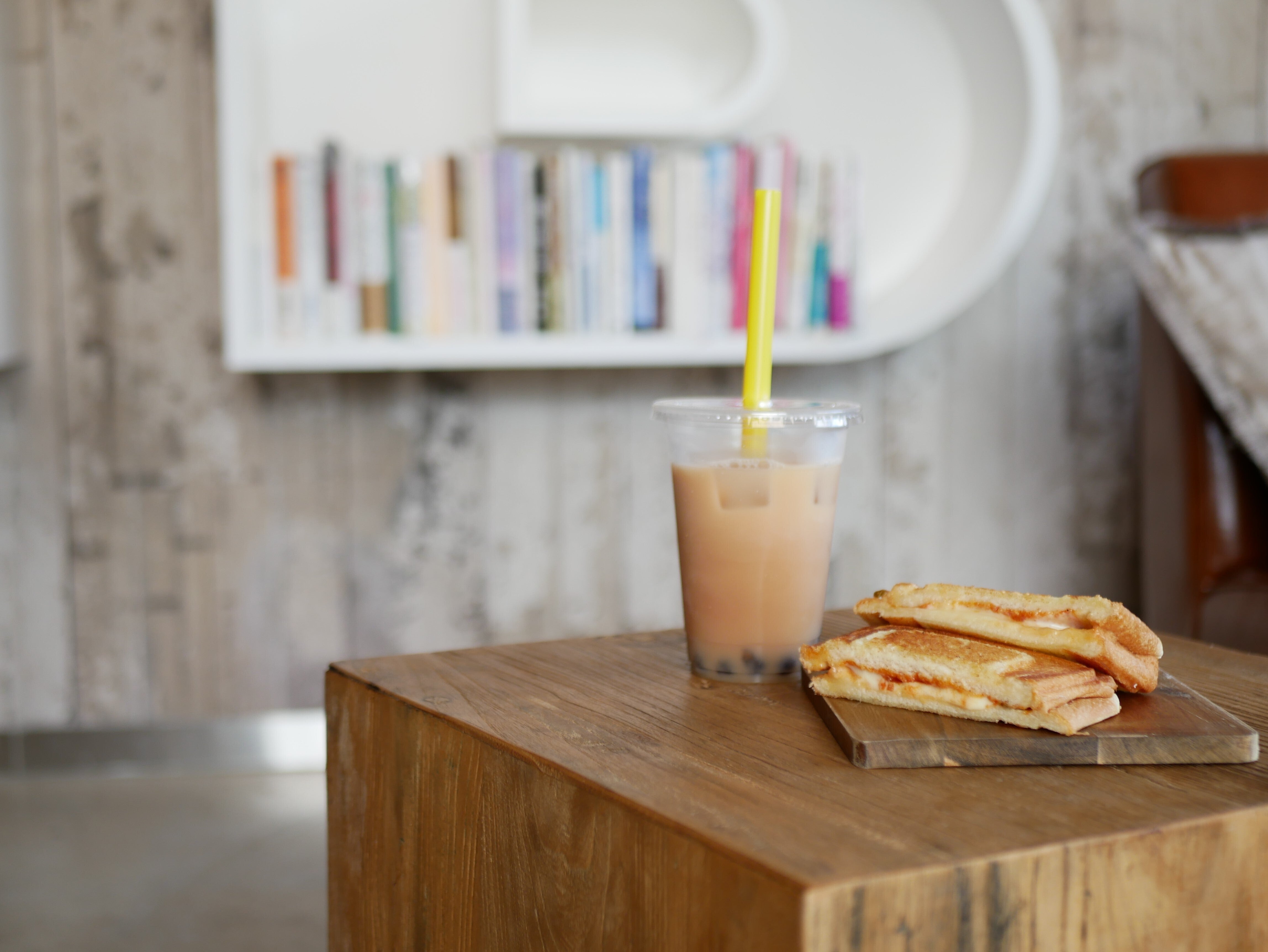 私はお昼をBookTeaBed IZUOSHIMAさんでいただきました。大島牛乳を使ったタピオカミルクティーとホットサンドがおいしかったです。