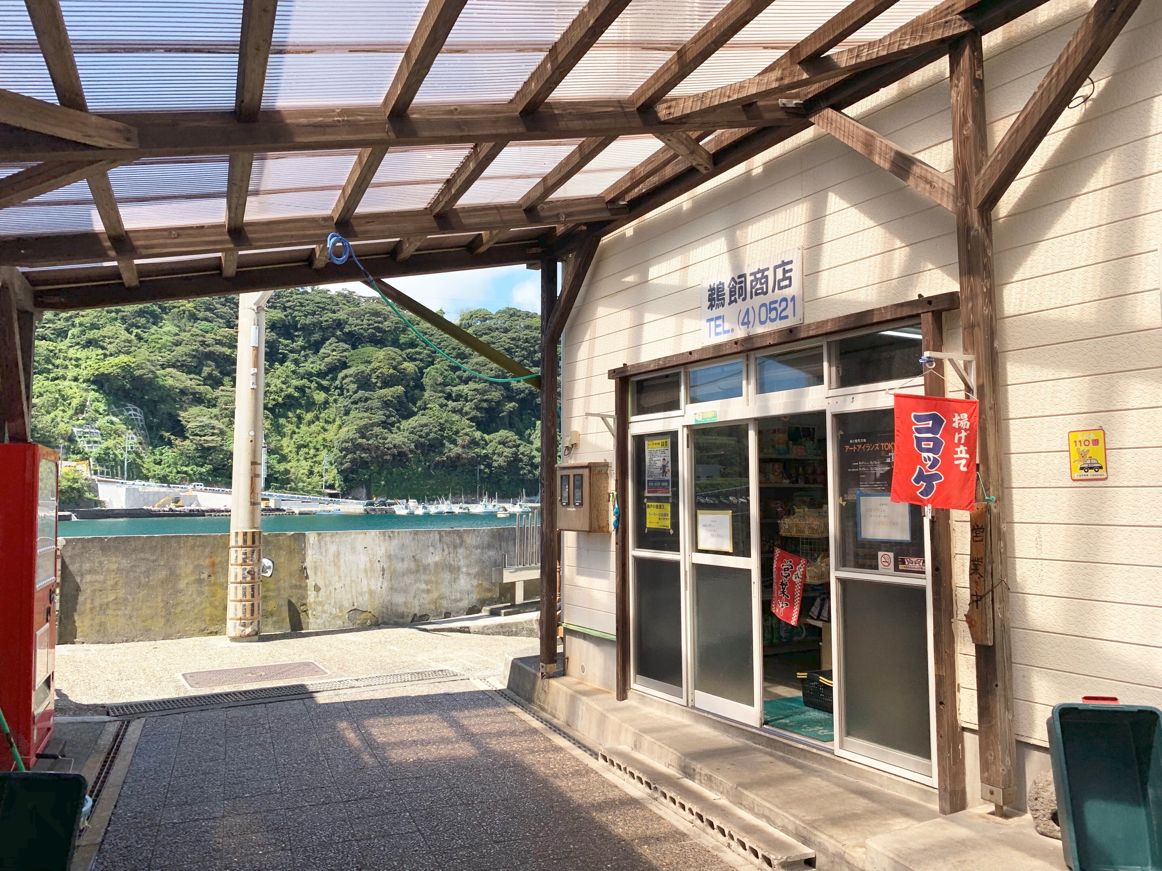 島民に大人気の鵜飼商店さんでコロッケをいただいたり……