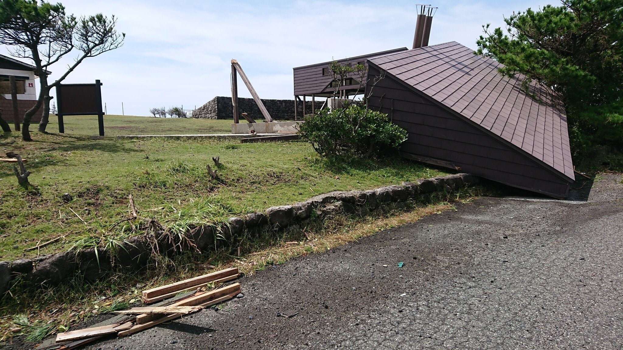 (倒壊したトウシキキャンプ場の炊事場の屋根)