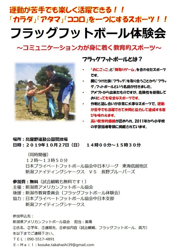 少しでも多くの方に、フラッグフットボールの取り組みと新潟BOWL2019を知って頂きたいので本記事をSNSなどでシェアして頂けますと幸いです!