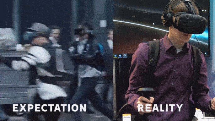 仮想世界をリアルに体験するには実際にその世界に足を踏み入れる必要があります。 その世界を楽しむためにはその世界の中にいる自分と現実世界にいる自分が同じ動きをとっていないと、いまいちその世界に入り込めません。ただ画面に向き合っているだけじゃ現実世界と仮想世界の壁はいつまでも私たちの前に立ちはだかったままです。