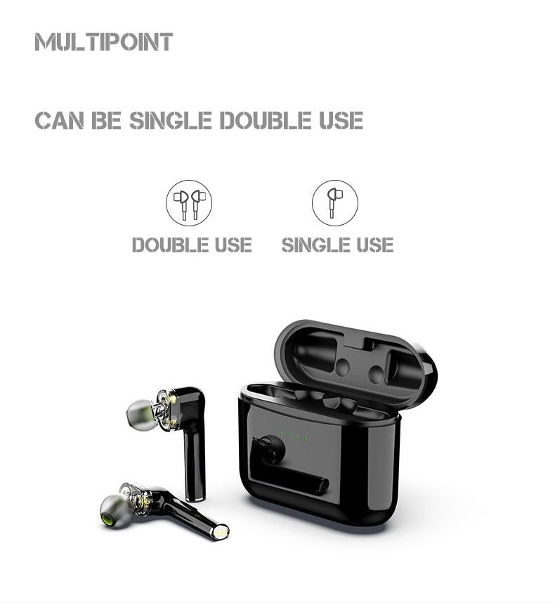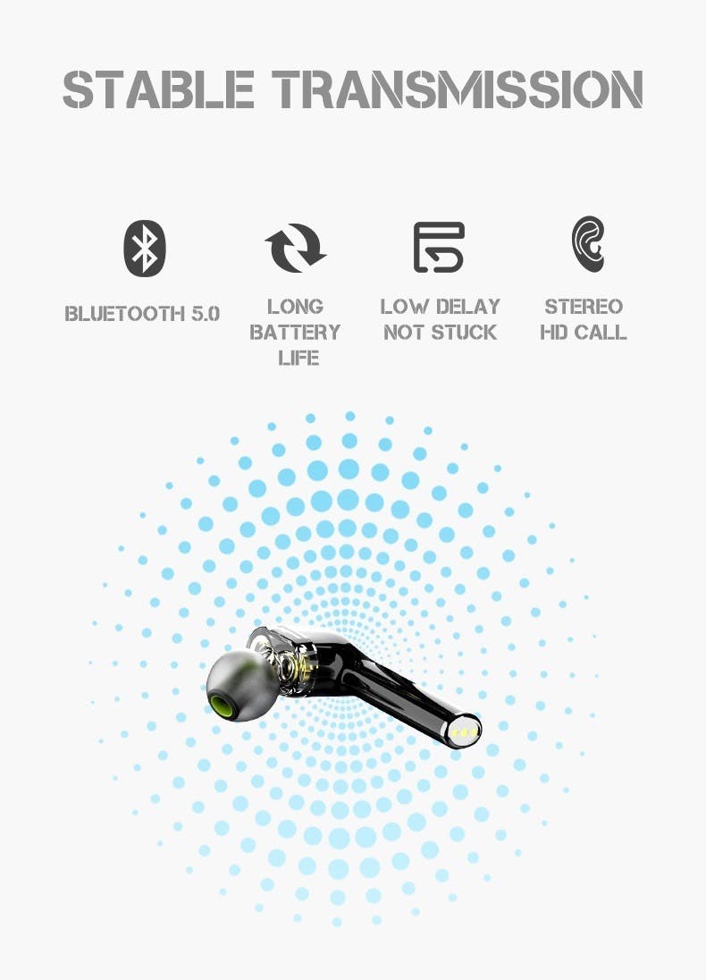 *ダイナミックドライバー *会話の度に音楽を止める必要がないTRUE WIRELESS EARPHONE * QUALCOMN最新チップセットBluetooth 5.0 搭載、クリアな通話音質、*片耳モード|両耳モード、スーパー軽い、*長期使用、ハイファイ(Hi-fi)サウンド、*ダイナミックボカリズム、*CVC8.0ノイズキャンセリング、Siriを呼び出し、*再生時間6時間、*待機時間100時間、*IPX6级防水設計、*急速充電時間2時間、*感度97+3dB。