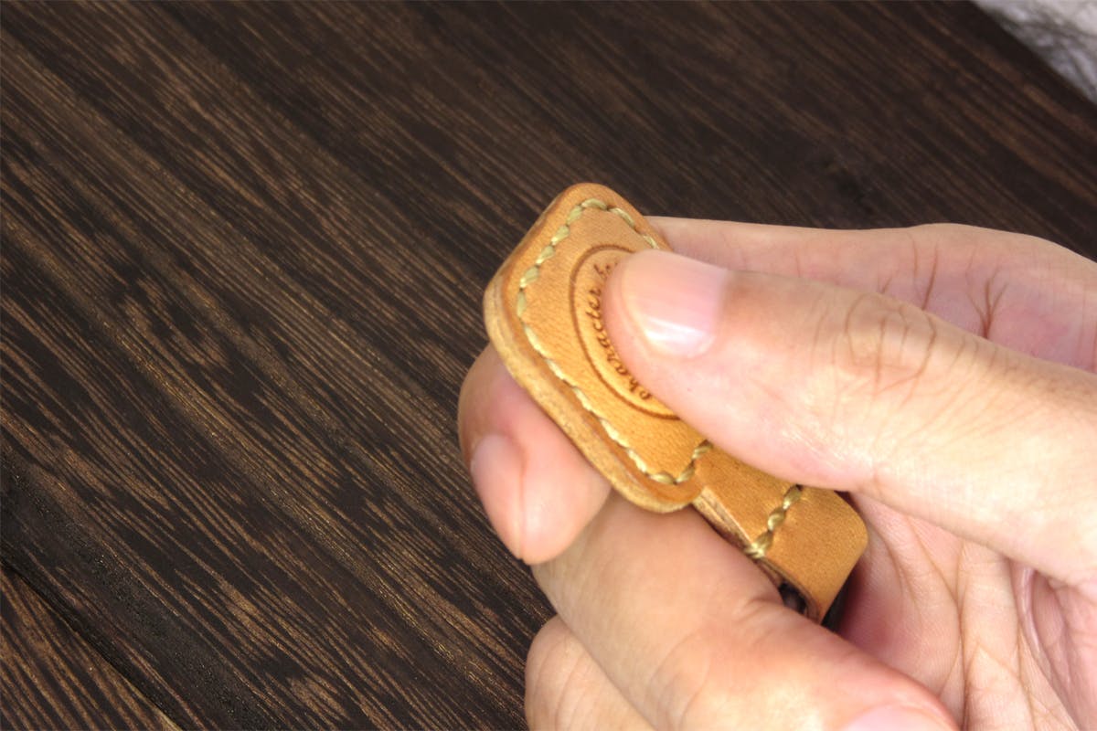 ・抜き型を使わず手作業でパーツを切り出し、コバ(革の側面の切り口)をヤスリで整え、磨き、処理しています。