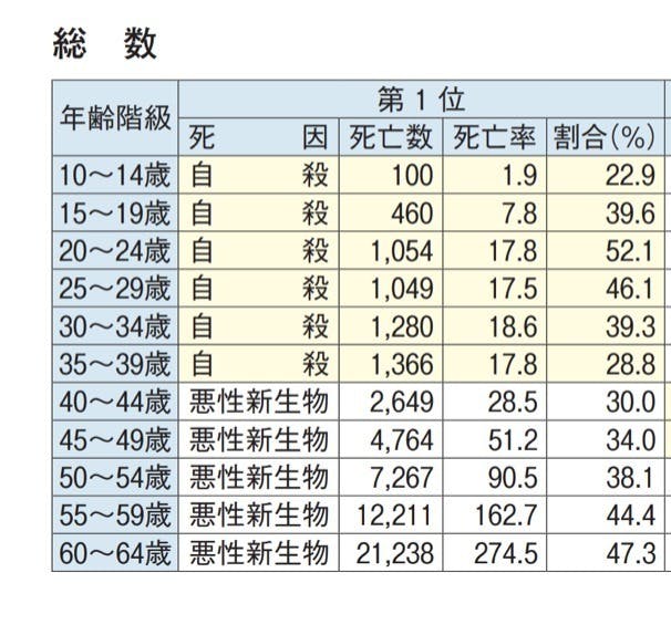 国際的にみても日本は深刻で、 他の国に比べ、15~34歳の若い世代の死因の第一位が自殺となっています。
