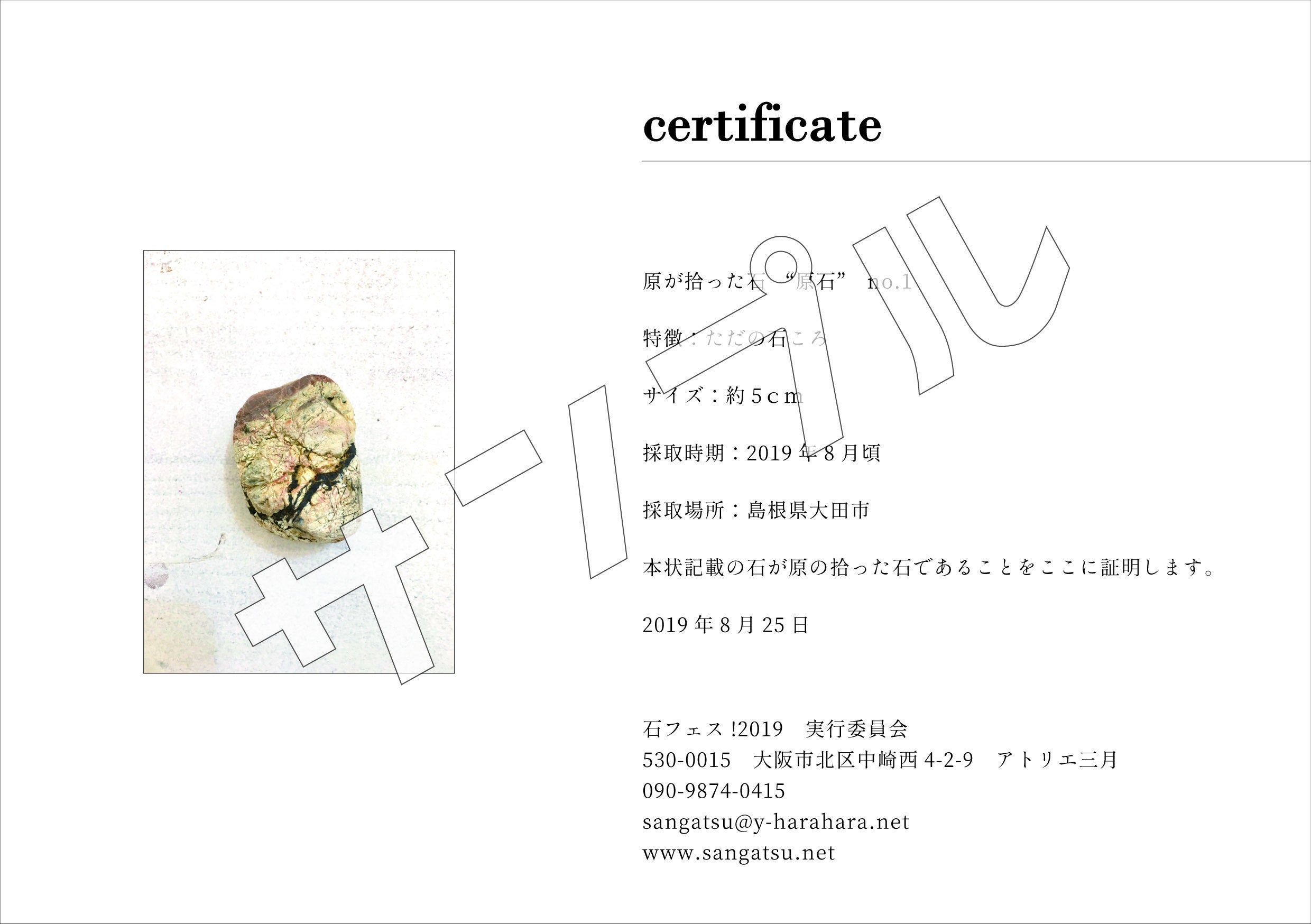 お礼のメッセージ+石フェス!主宰の画家・原康浩が拾い集めた「原が拾った石」「原石」ご提供します!(証明書付)