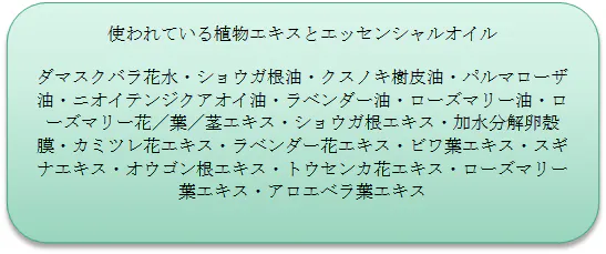 これらのエッセンシャルオイルや植物エキスの組み合わせは母が家族を想って考案した成分の組み合わせを基に、サティス製薬が可能な限り多くの方の肌に合うような成分比になるように調整し厳密な安全性のテストと使用感のテストを繰り返し行い、二か月以上にも及ぶ試作品開発段階を経て満足のいくクオリティで完成しました!