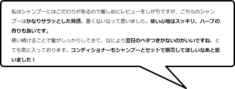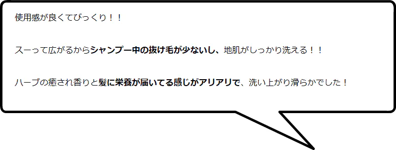 「肌がアトピー肌で小さいころからシャンプーやコンディショナーに苦労していたがこのシャンプーは問題なく使えている。安全と安心を第一に考えられて、使い心地や香りがいいシャンプーやコンディショナーをずっと探していました。」というお声を頂いたり、