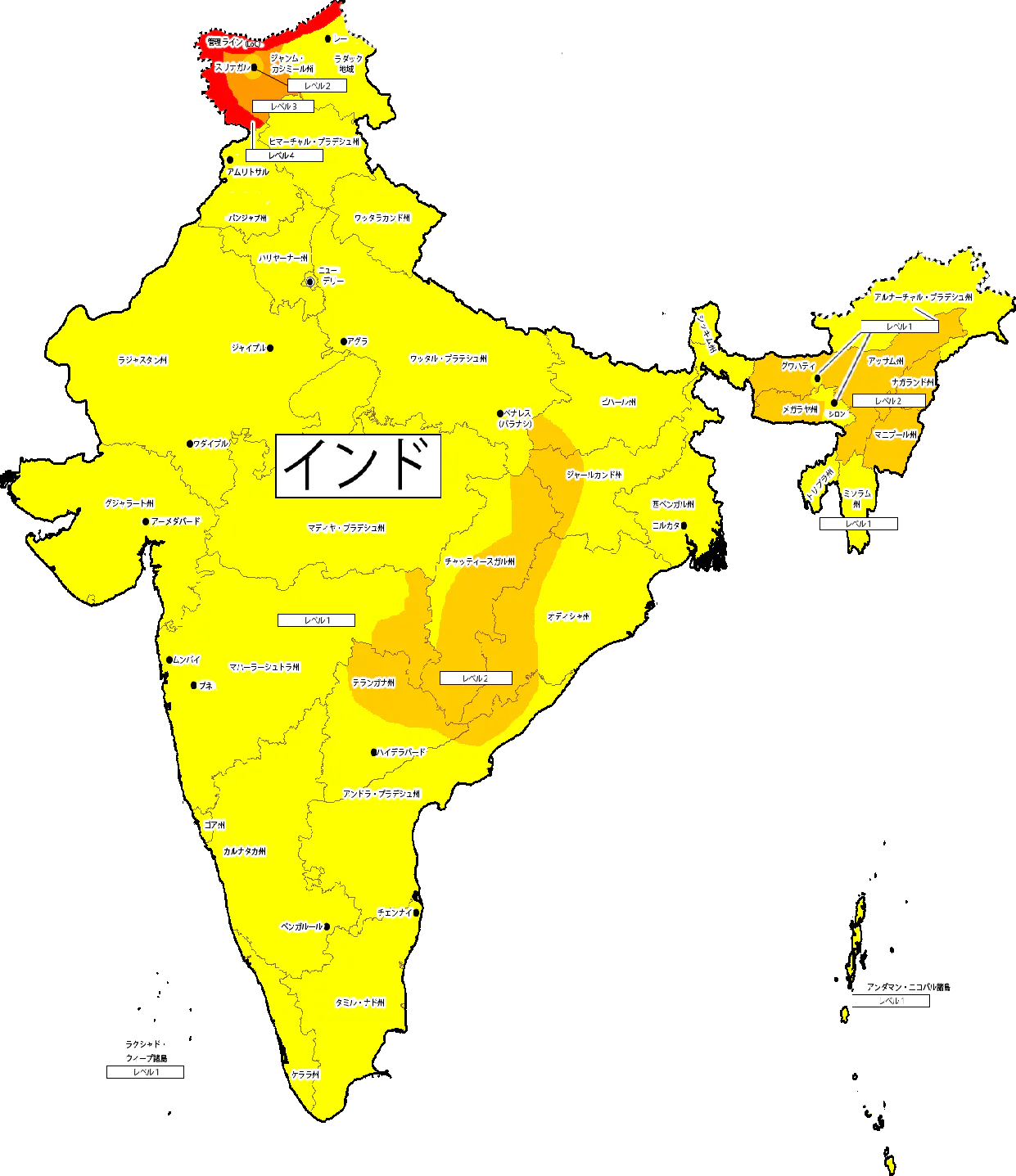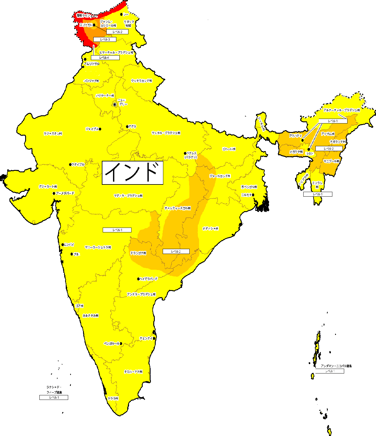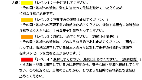 これは外務省が発表している海外の治安に関しての色分け基準です。