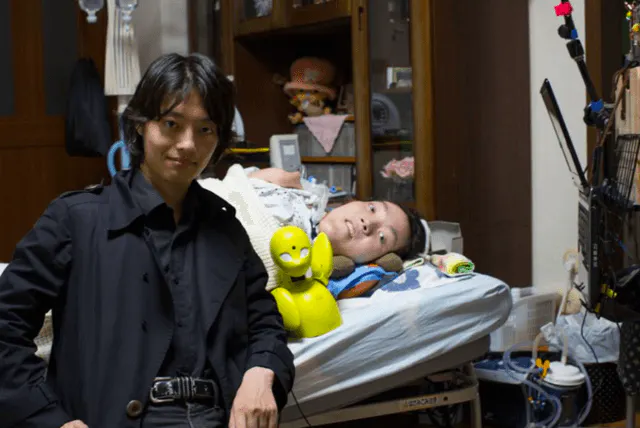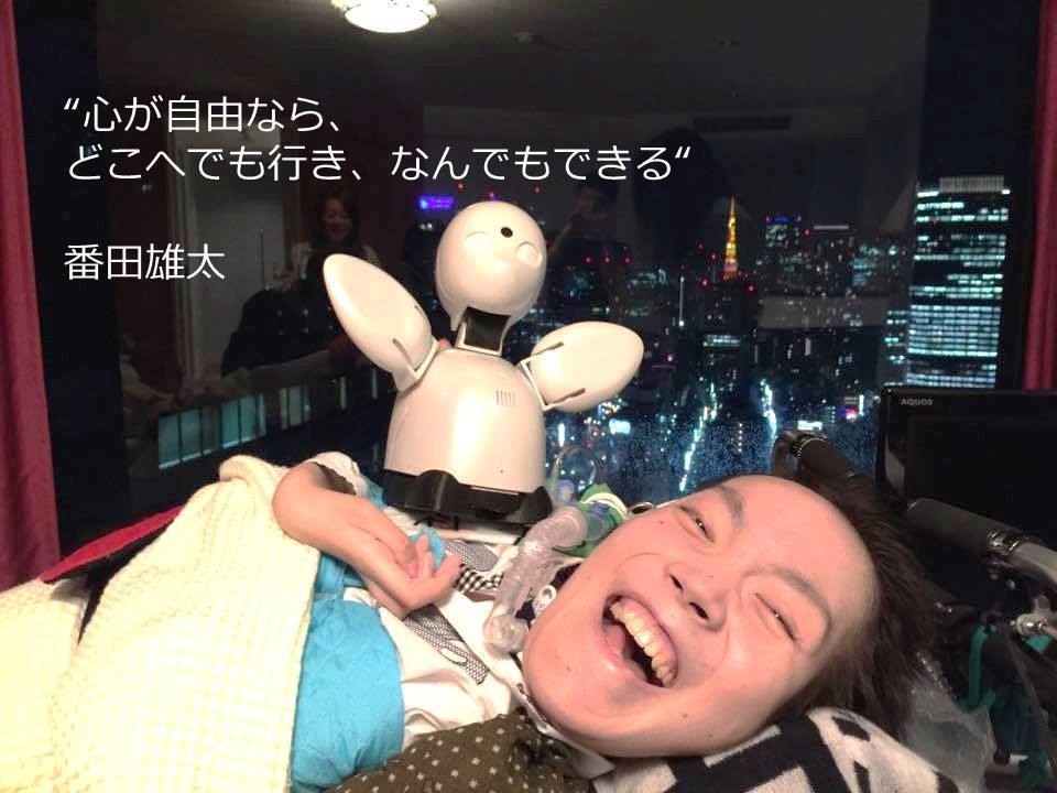 オリィ研究所の創業期から一緒にOriHimeを開発してきた寝たきり秘書の番田雄太。2017年に亡くなった、私の親友です。4歳で頸髄損傷になって20年以上寝たきり状態が続いていました。彼の身体は首から下は全く動かず、かつ身体は東京から遠く離れた盛岡の病院にいました。しかし彼は顎を使ってPCを操作し、毎日OriHimeで会社に出社し、私と共に全国の講演会を周り、講演者や私の秘書として給料を得ると同時に当事者としてOriHimeの改良案を提示していました。