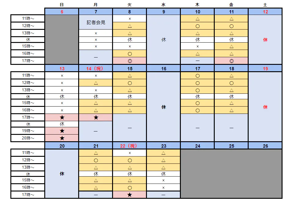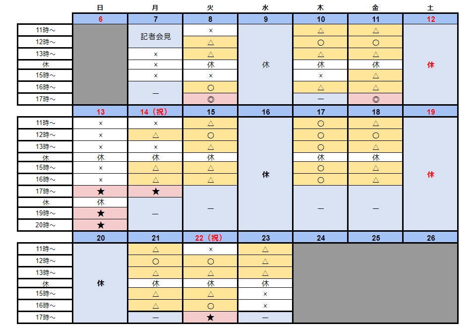 ★は、新たに追加され、吉藤による解説が聞ける特殊デーとなります。