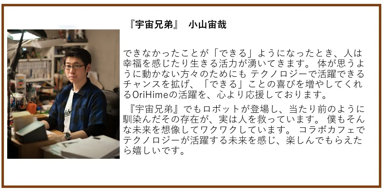 このSF作品『宇宙兄弟』、そしてその世界を現実にすべく設立された『せりか基金』とコラボレーションし、障害者だけでなく、人類全体にとって大きな一歩を踏み出すイベントを目指していきます。