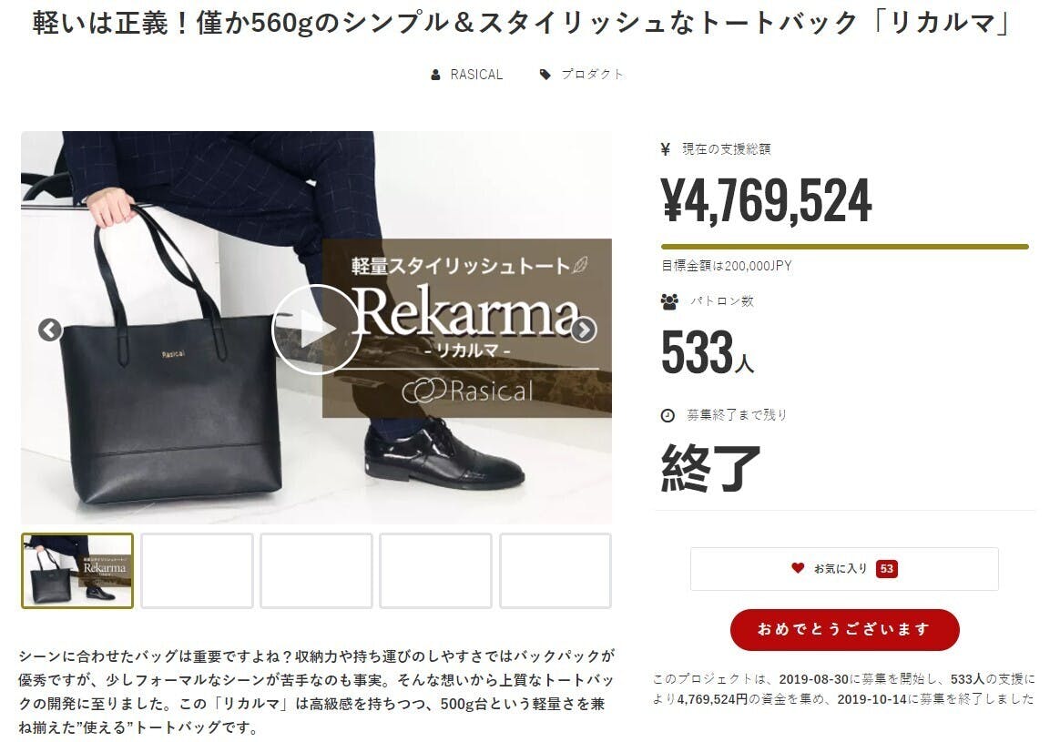2019/10/16 10:59いつもご支援ありがとうございます。「リカルマ」のプロジェクトが、目標支援金額達成し、プロジェクト終了となりましたので、お知らせ申し上げます。目標達成できたのは、皆様方のご支援のおかげです。本当にありがとうございます!!引き続き、ラシカルの製品をどうぞよろしくお願いいたします。発送につきましては、またご報告させて頂きます。宜しくお願い致します!ラシカル もっと見る