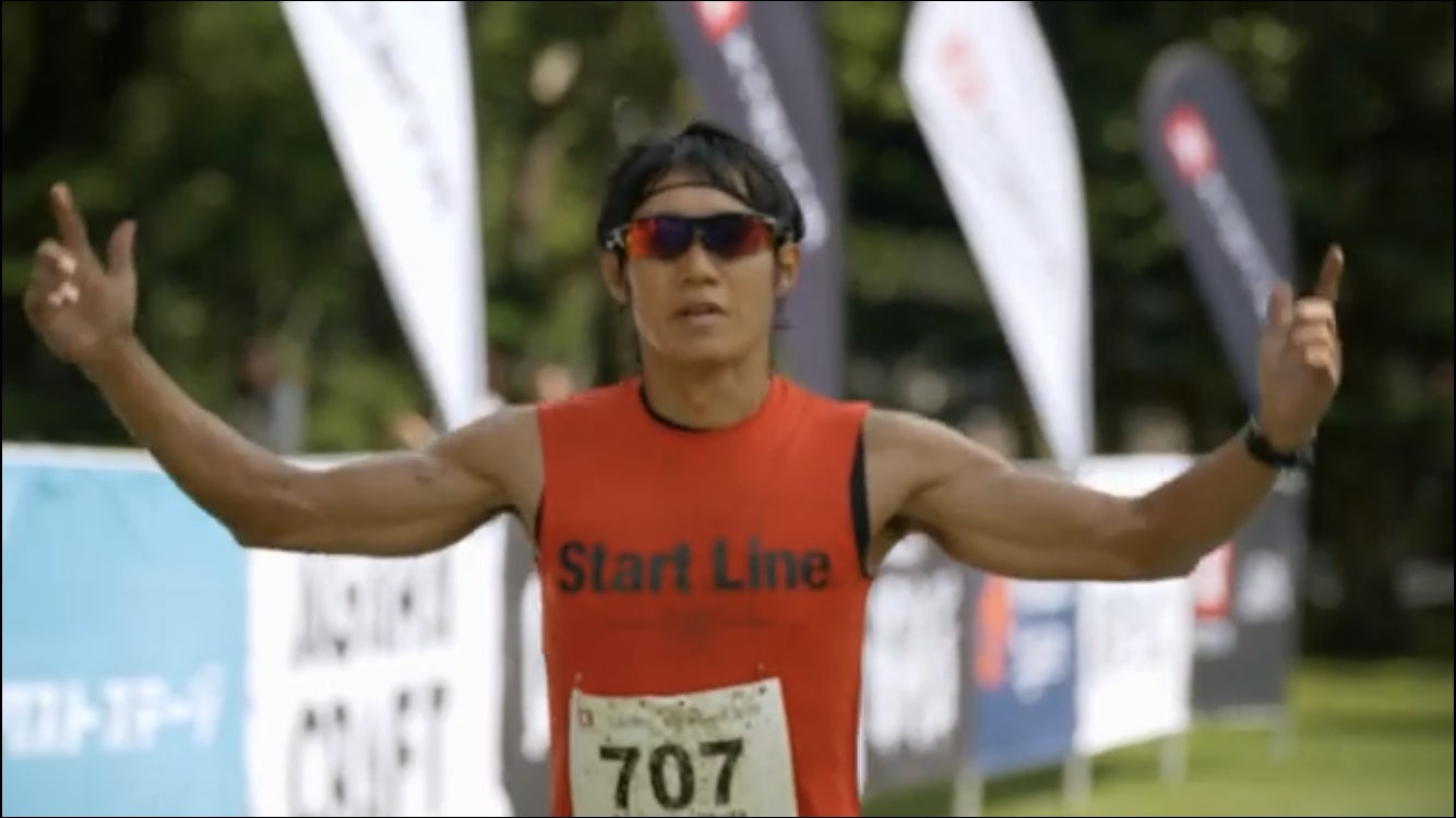 (画像: 2019 Xterra JAPAN デュアスロン優勝のゴールシーン)