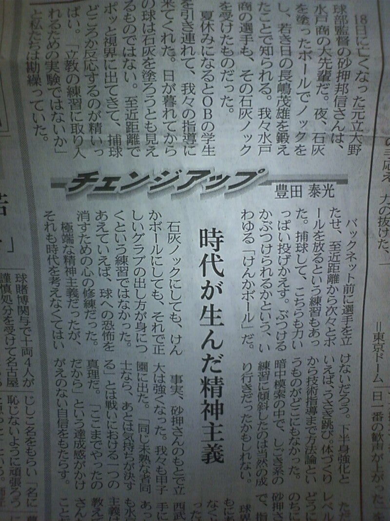 このチャンジアップというコラムは、元プロ野球選手の豊田泰光さんが当時連載されていたものでした。