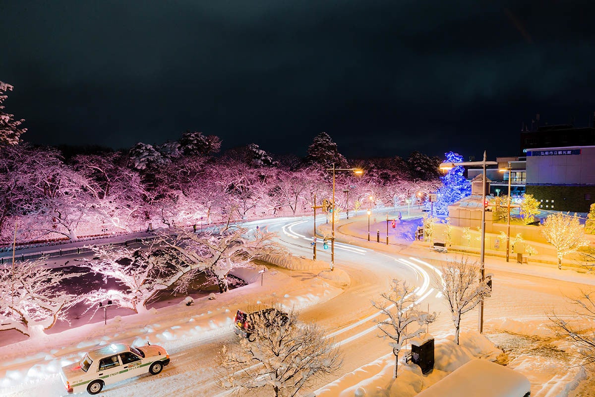 「日本三大夜桜・弘前公園に隠れている、冬の夜のさくらを美しくライトアップしたい!」