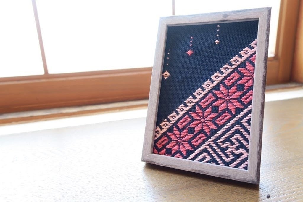 弘前市のこぎん刺しサークル「みんなのこぎん」様による、さくらをイメージした模様入りの新作のこぎん刺しグッズです。どんなものになるかはお楽しみに!