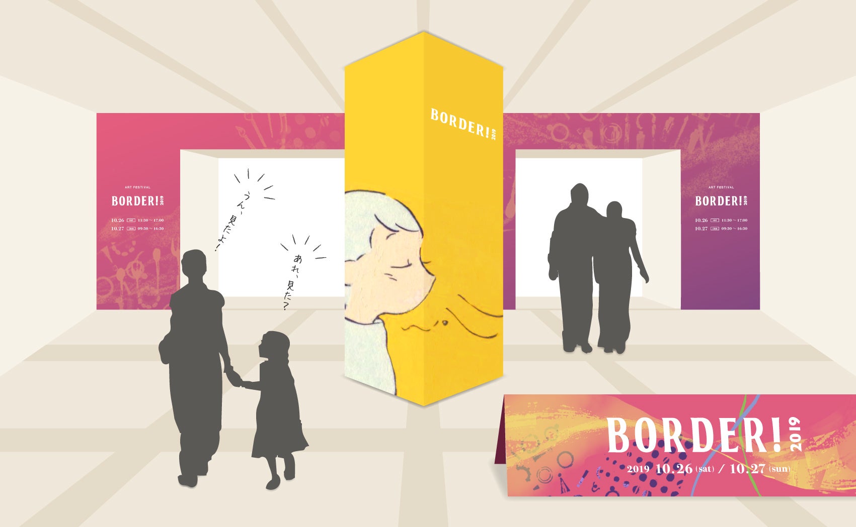 「作る側と観る側」の間にある「境界線 = BORDER」を超えることがアートフェスティバルBORDER!の実現したいコンセプトです。出展者も来場者も、そして運営をする私たちも「自分にはできない」という見えない一線を越えて、それぞれが交じりあいながら新しい景色を一緒に作っていくことを目標としています。